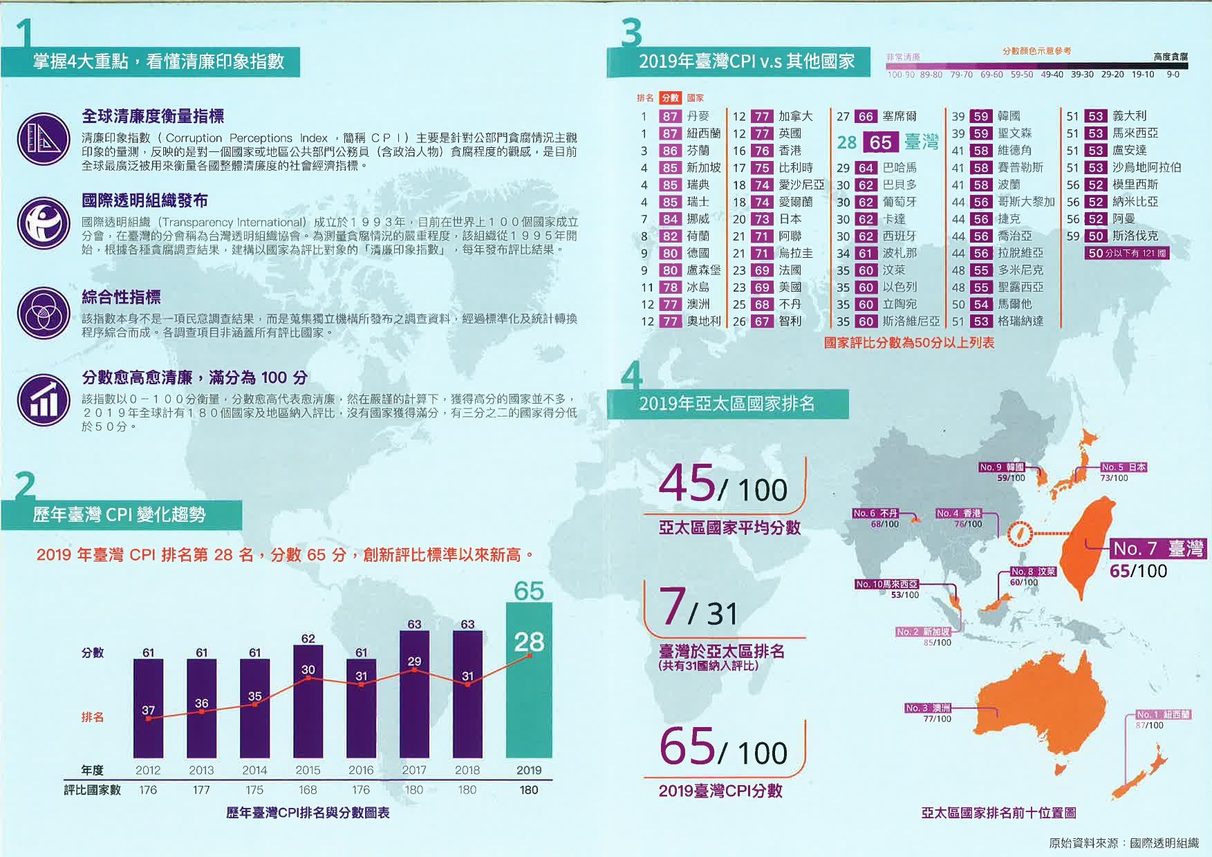 清廉印象指數(Corruption Perception Index,簡稱CPI)宣導摺頁