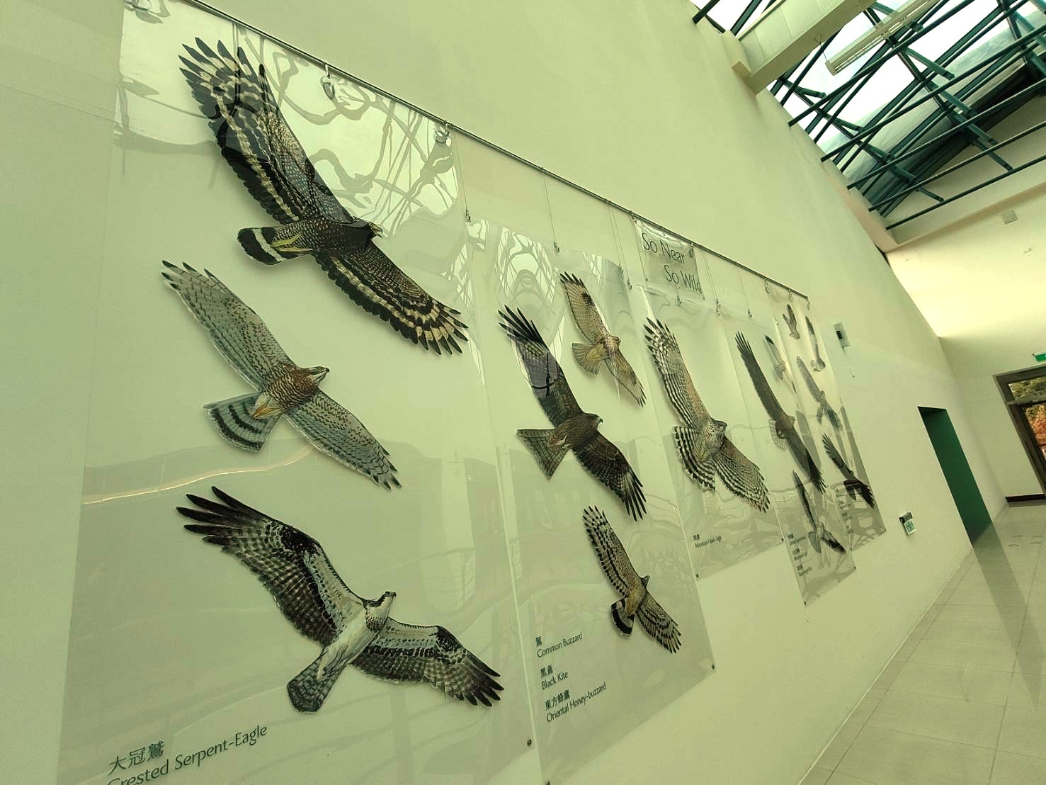 原本讓大家驚嘆不已的巨幅猛禽圖像掛軸,在大雪山國家森林遊樂區遊客中心的挑高空間及天井灑下的自然光襯托之下,讓展翅的猛禽更顯壯闊美麗,而在展場周圍座位上生動活潑的猛禽插圖,可說是到大雪山不能錯過的拍照打卡景點之一。