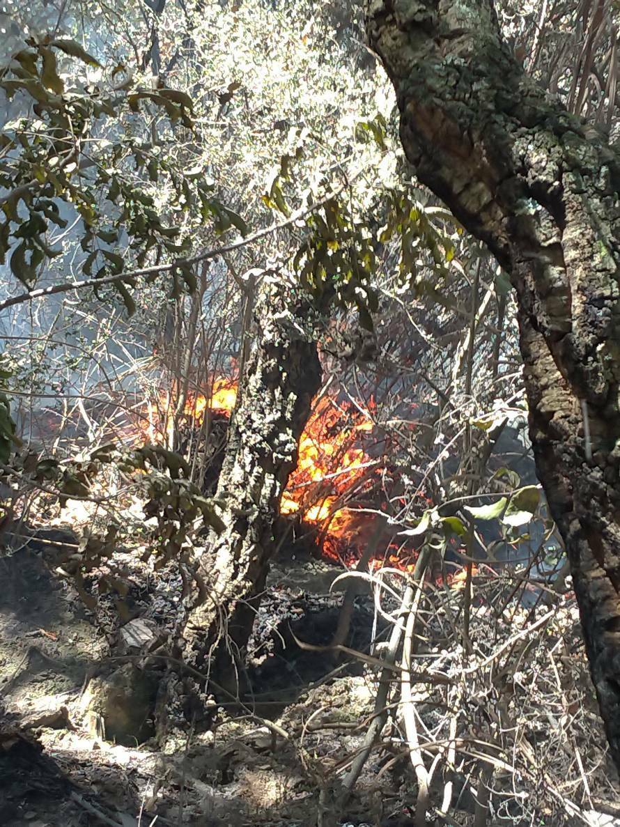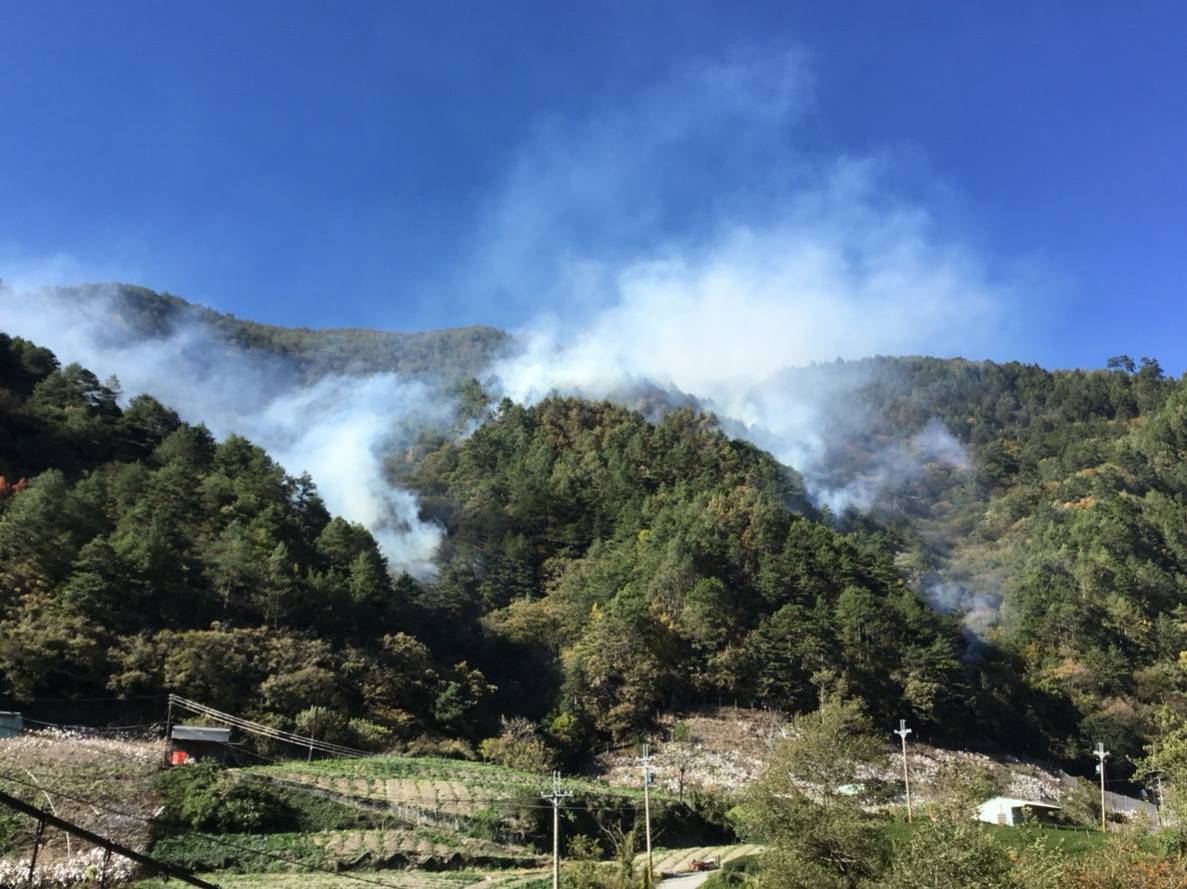 東勢林區管理處於今(11/24)日上午接獲通報梨山地區發生森林火災,地點位於梨山地區大甲溪事業區23林班,經巡山人員以GPS及望遠鏡觀察確認火災位置後,立即動員展開救火工作。 火場海拔高度1,820公尺,現場濃煙密布,坡度45度,初估燃燒面積約1.2公頃,林管處緊急調度森林救火隊弟兄奔赴火場,目前動員計23人全力搶救,同時,內政部空中勤務總隊出動直昇機對火場直接灌灑10次,另消防隊亦趕赴現場佈水線,陸空全力合作持續滅火中。 東勢林區管理處呼籲目前已進入乾燥季節,民眾上山請注意防火,若發現森林火災盡速通報消防單位或撥打林務局保林專線0800-000930進行通報,另森林法規定放火或失火燒毀他人之森林者,應負刑責外尚須負民事賠償責任,請大家一起維護國家寶貴森林資源。