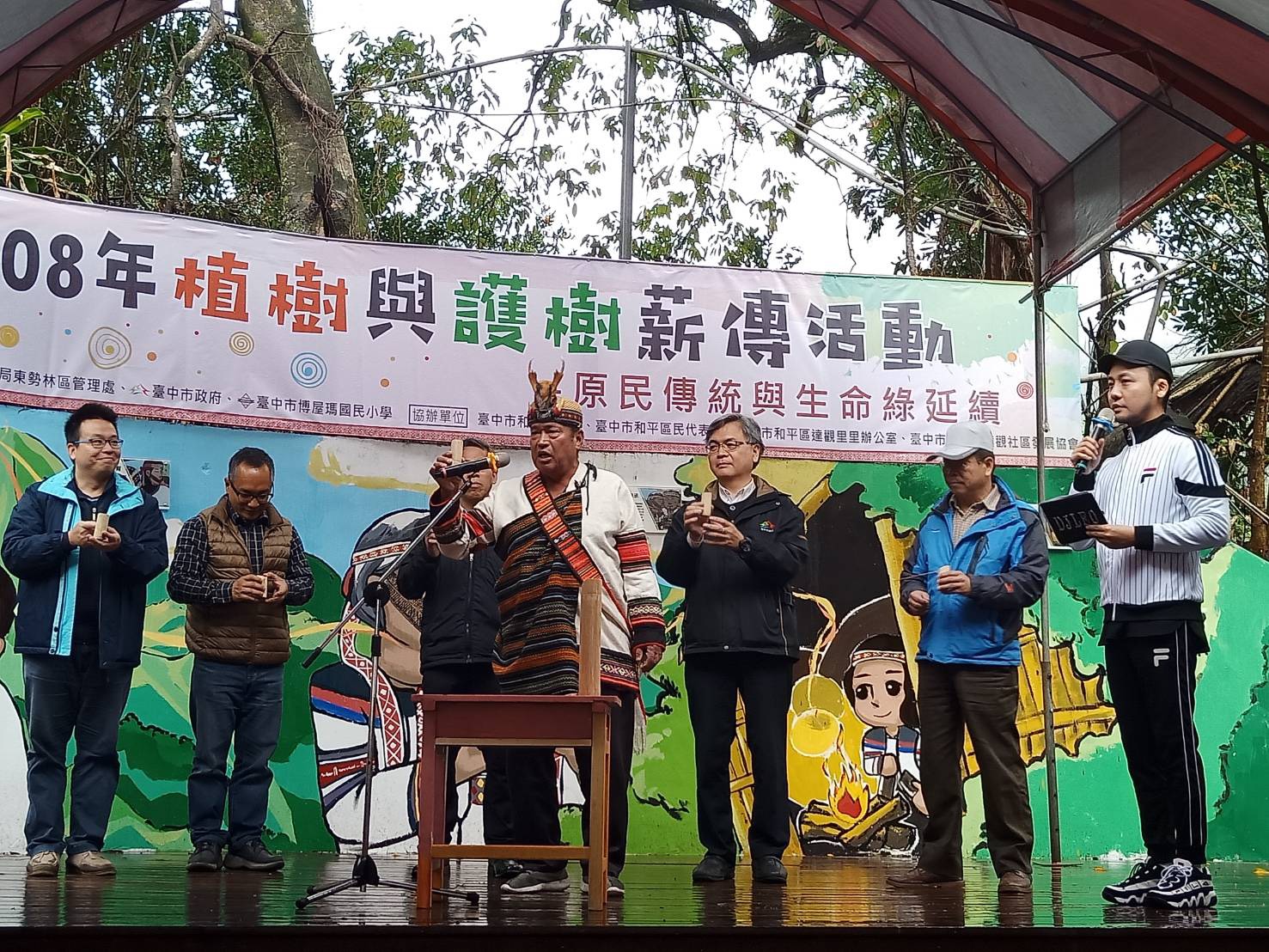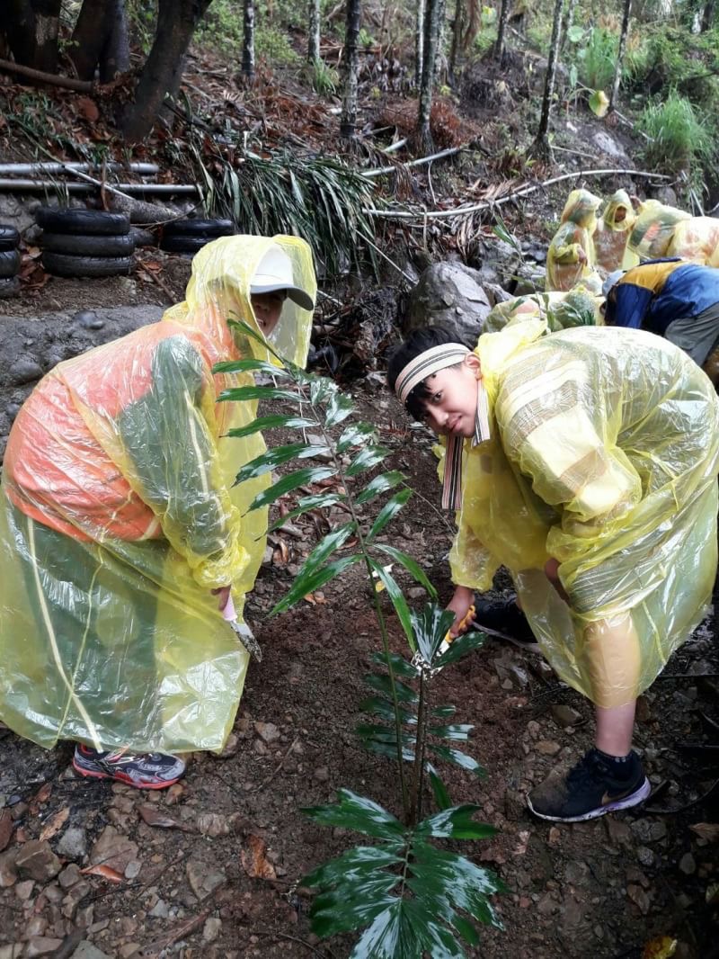 東勢林區管理處為延續原住民傳統山林智慧及延伸台灣島嶼生命綠,特別於108年3月8日與台中市政府及博屋瑪國小共同辦理「原民傳統文化與生命綠延續」植樹暨護樹薪傳活動,雖然天空持續飄雨但仍澆不熄學生及居民植樹熱情,現場由東勢林區管理處處長蕭崇仁、博屋瑪國小校長比令亞布、臺中市政府農業局林務自然保育科科長徐宏銘、和平區區長林建堂、原住民族事務委員會專門委員林啟正、達觀里里長陳振福及達觀部落頭目陳榮爵等貴賓,帶領大家種下近百株山胡椒、山棕等原住民傳統植物。 今(3/8)日的植樹活動在博屋瑪國小及當地原住民傳統歌舞表演中展開,博屋瑪國小校長比令亞布當場高歌泰雅族傳統歌謠來歡迎大家的到來,特別介紹博屋瑪代表孕育、傳承、興旺三種意涵。此外,由部落耆老進行感恩祈福儀式,陳榮爵頭目在祈福過程中表示「沒有樹就沒有水,生活最需要的就是水,感謝林務局東勢林區管理處來照顧森林,希望我們部落居民一起和林管處來照顧我們的樹」。博屋瑪國小及達觀部落居民熱情同歡,不畏現場風雨共同種下山胡椒、山棕等原住民傳統植物,齊心打造校內原民文化教學環境,活動中並特別邀請七星環境協會專業講師進行校園樹木健診、土壤改良及護樹教學活動,部落居民紛紛表示獲益良多,活動現場還準備了500株杜鵑、桂花及台灣肖楠,捐發票換樹苗,讓大家帶回家打造綠美化家園同時做公益,學生與居民熱情響應。 東勢林區管理處處長蕭崇仁表示,博屋瑪國小為全台第一所原住民族實驗小學,課程包含泰雅族織布、可食植物認識…等,藉由泰雅族傳統文化傳遞現代知識能力,例如本次種下的「山胡椒」是原住民特色香料,另外「山棕」也可製成掃把等生活用品,希望藉由本次活動凝聚在地力量,共同延續傳統文化及延伸島嶼生命綠。東勢林區管理處3月份還有一系列的贈苗活動,詳細贈苗資訊,歡迎民眾上東勢林區管理處官網最新消息區「108年植樹月贈苗活動場次資訊」查詢。