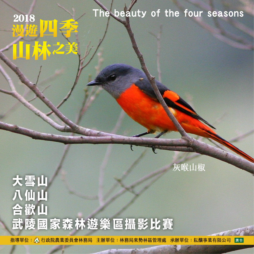 林務局東勢林區管理處舉辦2018「漫遊四季山林之美」攝影比賽,邀請大家遠離塵囂,拿起相機,投稿眼中的山林美景,輕鬆拿獎金! 東勢處轄區內有大雪山、八仙山、武陵、合歡山四處國家森林遊樂區,各具豐富遊憩資源、自然景觀獨特及交通便捷等特性,是中部地區饒富盛名的旅遊勝地。無論您想賞鳥、賞蝶、觀星、賞雪、欣賞晚霞、體驗大自然四季風情或上山吹吹風發發呆,都讓您有意想不到的體驗! 現在就拿起您的相機,一起出發,捕捉您眼中的美景,即日起至108年6月30日截止,最高獎金兩萬元,得獎攝影作品將於各遊樂區巡迴展出,並製作成限量明信片,活動詳情請上「2018漫遊四季山林之美攝影比賽」網站(已下線)」或電詢04-35051256黃小姐。 相關旅遊資訊,請洽大雪山遊客中心(04)25877901、八仙山遊客中心(04)25951214、合歡山遊客服務中心(049)2803985或松雪樓(049)2802980、武陵山莊(04)25901020詢問,或至台灣山林悠遊網查詢。