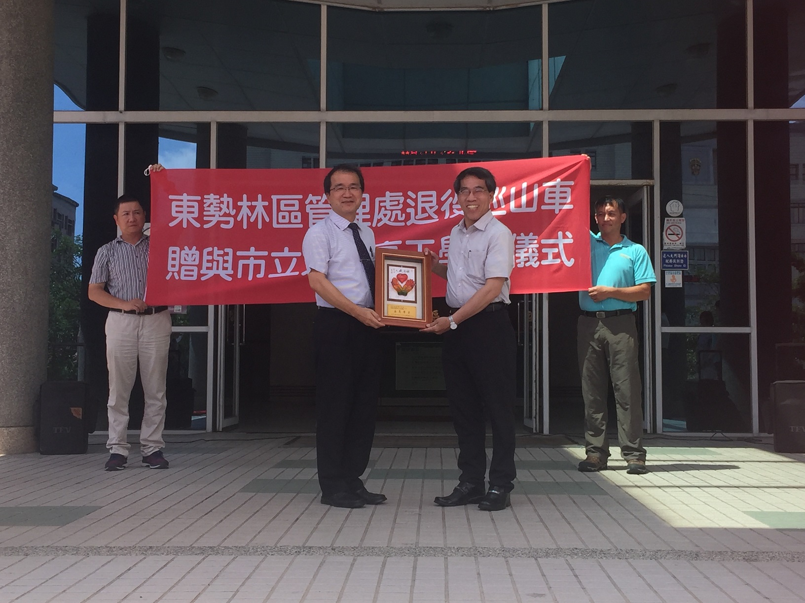 林務局東勢林區管理處於108年6月20日下午2時,將退役巡山車贈與臺中市立東勢工業高級中等學校,做為學生實習課程拆解教學用,使同學們能有更多實際操作的機會,讓理論與實務得以相互驗證配合,並嘉惠在地學子,以發揮報廢財產最大剩餘價值。 東勢林區管理處蕭處長崇仁表示,本次贈與汽車1輛及重型機車7輛,期望以實際行動充實技職教育教學設備,優化學生專業實作技術能力,亦希望同學們能好好利用,以提升專業技術能力,期許同學們未來能成為一流的汽車裝配、維修技術人才。更期望透過此項活動達到拋磚引玉的效果,讓社會上更多人關心教育工作,企為社會培育更多專門的優秀人才。