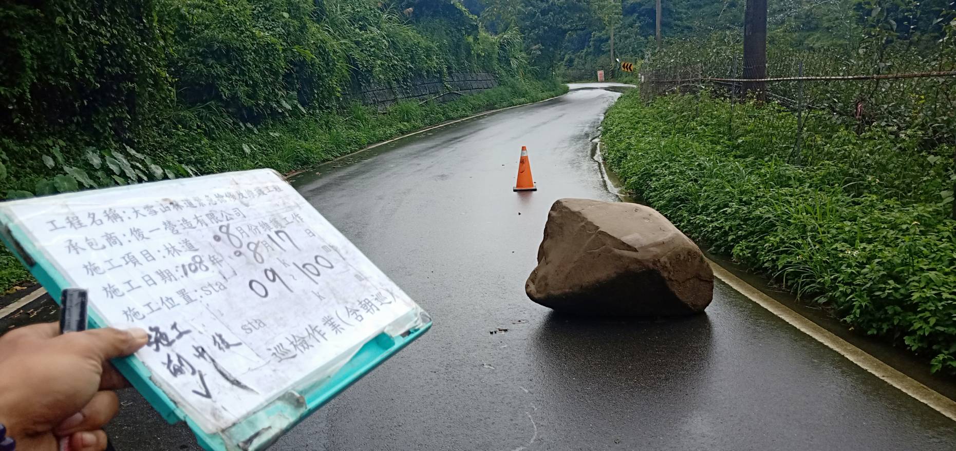 自8/9利奇馬颱風過後,中部山區近兩禮拜連續降雨,大雪山林道邊坡相當不穩定,已有多處發生有坍塌、落石及樹木倒塌。林務局東勢林區管理處已即時完成處理,因大雪山林道8月份之降雨量已高達1392mm,林區管理處呼籲民眾,現階段山區邊坡不穩定,加上白鹿颱風來襲,零星降雨或日曬影響均可能造成崩塌落石或倒木發生,請注意氣象預報小心駕駛,勿於大雪山林道長期逗留、漫步及進行遊憩休閒活動,以維護自身安全。