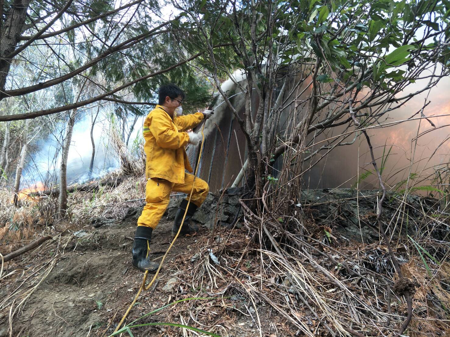 109年1月19日上午8時,大甲溪事業區第5林班地傳出森林火災,東勢林管處立即啟動森林火災搶救機制,目前動員36名國家森林救火隊員前往火場,並請求消防局、空中勤務總隊支援,空中地面全面撲救。 東勢林區管理處表示,火場位於大甲溪事業區第5林班地(梨山佳陽附近),目視多濃煙,面積估算約1.5公頃,燃燒大部份為地被硬草類植物及矮灌叢等輕質燃料。為提升搶救效率,東勢林區管理處現場已拉設水線200公尺,同時指派2組人員共15人開闢防火線200公尺,東勢林管處人員陸續集結前往現場救火,並迅即聯繫空中勤務總隊黑鷹直升機協助進行空中投水,目前已投水灌灑14次,火勢目前控制於防火線及水線範圍內,各單位積極橫向聯繫,陸空聯合作業,全力滅火。 東勢林區管理處表示目前火災發生原因尚未釐清,待火勢撲滅後將交由警消單位蒐證確認起火原因。東勢林區管理處呼籲:除依森林法第34條規定經該管消防機關洽該管主管機關許可者,不得有引火行為,違者最高可處60萬元罰鍰;至於放火燒毀他人之森林者,最高可處10年有期徒刑,失火燒毀他人之森林者,最高可處2年有期徒刑,且除負刑責外尚須負民事賠償責任。