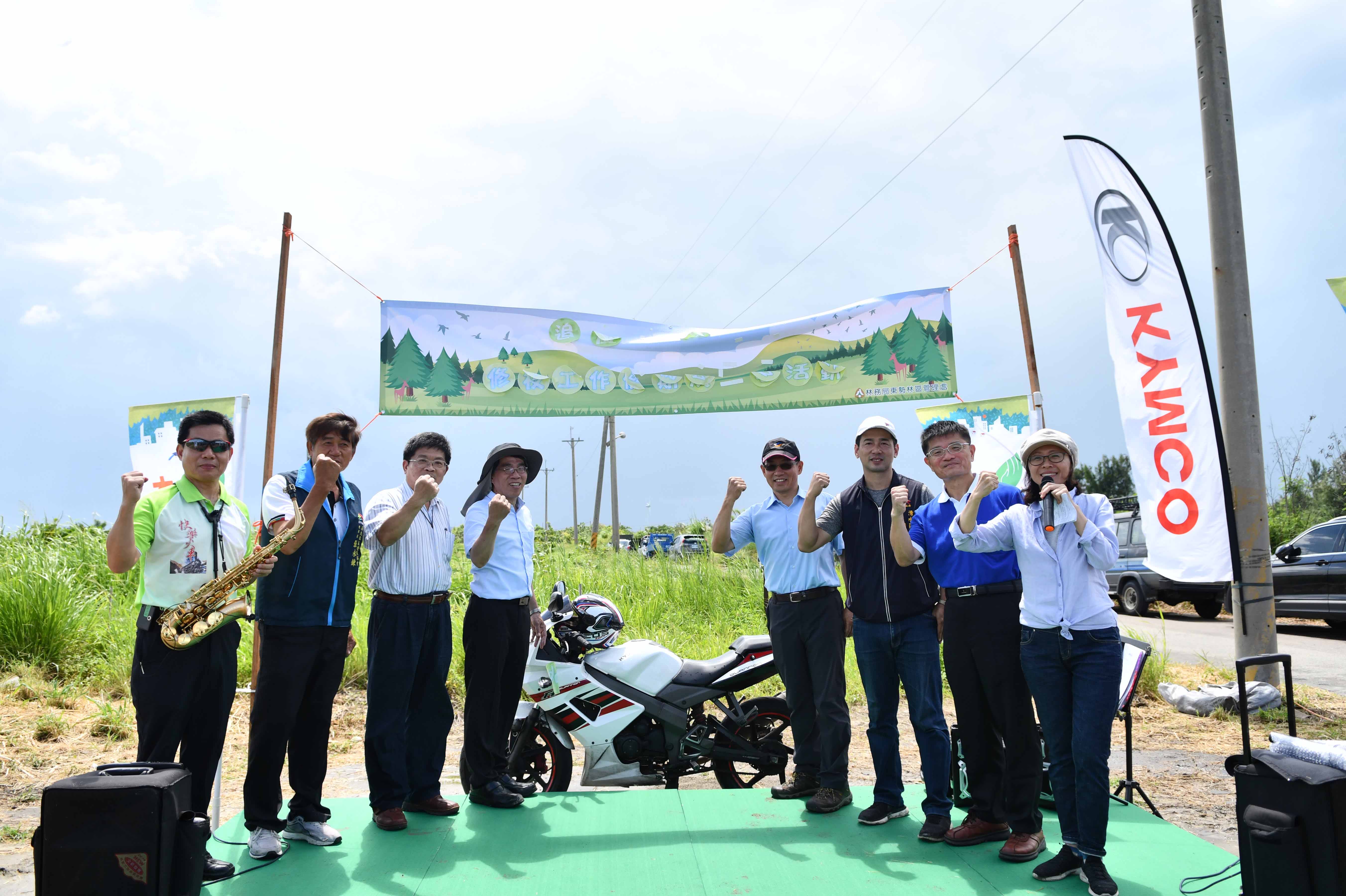 為鼓勵社會大眾走進保安林內感受森林之美及認識保安林生態系多元服務價值,林務局東勢林區管理處與光陽企業於今(6/21)日號召逾百位光陽機車車友及民眾參與1436號防風保安林修枝、除草工作,共同守護山林,同時也邀請保安林附近的社區居民,一同票選出最具在地代表性的保安林新名稱「高北番仔寮」,凝聚民眾對於保安林的情感溫度,攜手守護護國森林。 今天的活動結合企業、民間團體共同合作,現場邀請社團法人台灣野鳥協會與清水牛罵頭文化協進會導覽解說1436號保安林的生態環境、歷史人文,並搭配束口袋拓印DIY手作活動,讓參與民眾認識保安林常見植物、鳥類等,透過保安林地內撫育、除草工作,營造健康、安全的保安林,參與民眾對於第一次用”手”實際付出行動,保護森林的體驗,都感到非常驚喜,直說太有意義了。 現在保安林都是用編號作為名稱,不易讓人有所連結,很多在聚落、社區附近的保安林,與當地民眾生活息息相關,像1436保安林所在高北里舊名「番仔寮」,是里民們小時候呼朋引伴遊玩的地方,有很多回憶和情感在這裡,這次特別邀請大家一同票選最具當地代表性的名稱,希望能注入歷史記憶與生命力,期盼讓民眾多元認識保安林,走入保安林,共同保護保安林。 東勢林區管理處蕭處長崇仁指出,未來將在不影響保安林功能下,導入社區與企業參與或認養,讓保安林真正成為全民的保安林。