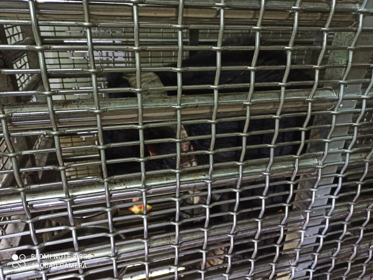 東勢林區管理處於10月1日上午接獲通報,位於東卯山附近果園有一隻台灣黑熊中套索,立即啟動通報救援行動,在各單位合作下,順利於當日下午將黑熊救援至特有生物研究保育中心低海拔試驗站照養。 10月2日早上觀察東卯山黑熊狀況不錯,嘗試給予水跟食物都迅速吃光,食慾很好;下午2時30分再度餵食,一樣迅速地將1500克的食物吃完,除了地瓜、紅蘿蔔、蘋果、木瓜等蔬果,這次加了一顆熟雞蛋替牠補充些蛋白質。獸醫師會將口服藥藏在食物中讓黑熊服下,也利用牠認真吃東西的時候在左前腳外傷區域噴藥治療,目前治療過程還算順利,黑熊的整體生理狀況也漸趨穩定。 東卯山黑熊目前進食狀況良好,食物以蔬果為主並搭配熟雞蛋,未來會視進食狀況隨時調整食物量及種類;投藥則是以口服及噴外用藥方式給予;熊目前情緒穩定,緊迫已明顯改善,但若有照養人員接近時仍會警戒甚至威嚇,為正常野生黑熊的反應,也是照養人員盡量減少打擾牠,盡量集中在進食時觀察及給藥的原因。待傷口狀況穩定,就可以進一步移到較大的籠舍讓牠適度活動,再擇期擇地野放。