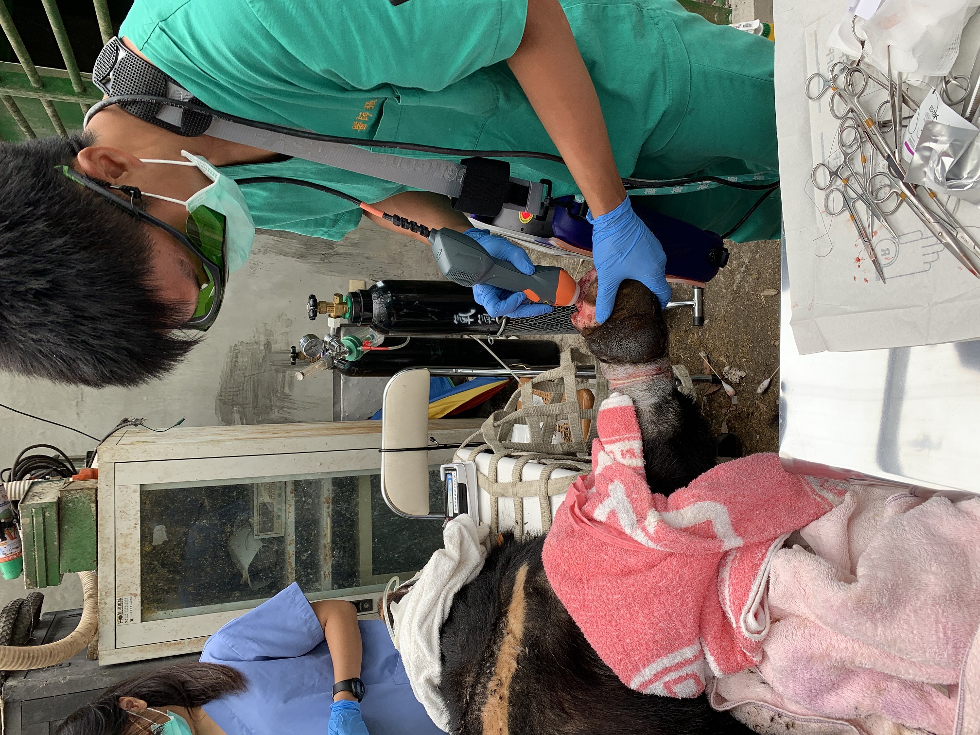 東勢林區管理處與特有生物研究保育中心於10月1日成功救援誤中套索之東卯山黑熊,在密集照養治療12日後,於10月13日進行第一次健康檢查及移籠評估。 特生中心野生動物急救站獸醫師團隊將黑熊麻醉後進行傷口檢查,發現東卯山黑熊左前腳傷掌的第一指處有較深之開放性傷口,第一指骨外露,經獸醫師截除骨頭及傷口處理後,尚須一段時間等待傷口復原癒合;另左前肢腕部因套索引起的環狀傷口已有收斂並逐漸恢復中;嘴部上嘴唇處仍有當初咬鋼索造成的傷口未癒合,但較不嚴重。獸醫師在進行完傷口清理、手術切除外露指骨以及雷射治療加速傷口癒合,整個檢查及醫療行動歷時約2小時結束。東卯山黑熊後續移置半室外熊舍繼續照養,預計仍需2至3週時間等待傷口癒合。 本次東卯山黑熊救援行動經農民、在地社區、警察單位、特生中心及本處通力合作,迅速通報及救援後送,於1日內立即完成救援,但所造成的傷口仍須醫療照養至少一個月,因中套索之動物會奮力掙扎,台灣黑熊更會為了掙脫套索去咬鋼索,造成嘴部及前肢受傷,即使未傷及骨頭及感染,在掙扎中鋼索越束越緊,對動物造成的傷害仍十分嚴重。 東勢林區管理處呼籲農民未來若遇有野生動物危害農作時,先行通報地方縣市政府或林管處協助防治,並多利用電圍籬及改良式陷阱精準防治野生動物危害,以減少對動物的傷害及誤捕瀕危動物。