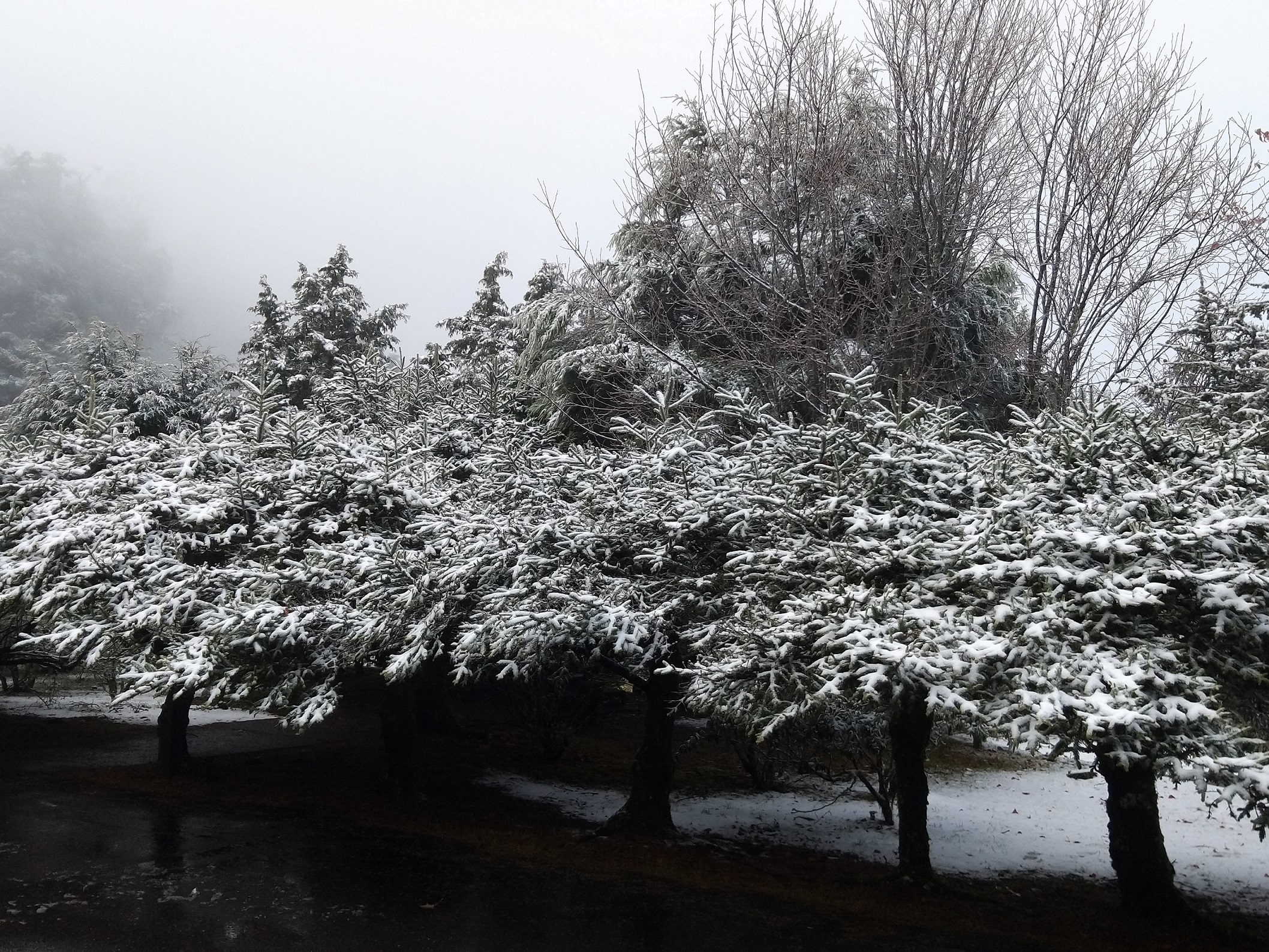 大雪山國家森林遊樂區內海拔約2600公尺的小雪山資訊站,於1/12清晨5點降下初雪,目前被大霧籠罩沒有繼續降雪,仍有部分積雪,迷霧中的森林雪景帶著朦朧的夢幻感! 因大雪山林道43k以上部分路段有結冰情形,為維安全實施機動管制措施,於43K遊客中心進行交通管制,限加掛雪鏈、具四輪傳動車輛通行,並將依融冰狀況機動開放通行,即時管制狀況及相關資訊請洽大雪山遊客中心(04)25877901。 東勢林區管理處貼心提醒遊客,目前小雪山氣溫為零下4度,大雪山遊客中心1.5度,上山記得準備足夠的禦寒衣物,並請注意雪地行車安全,於出發前確認備妥雪鏈、水箱添加防凍劑,沿路小心行駛、減速慢行、開啟頭燈、保持與前車的安全距離,快快樂樂出門、平平安安回家!