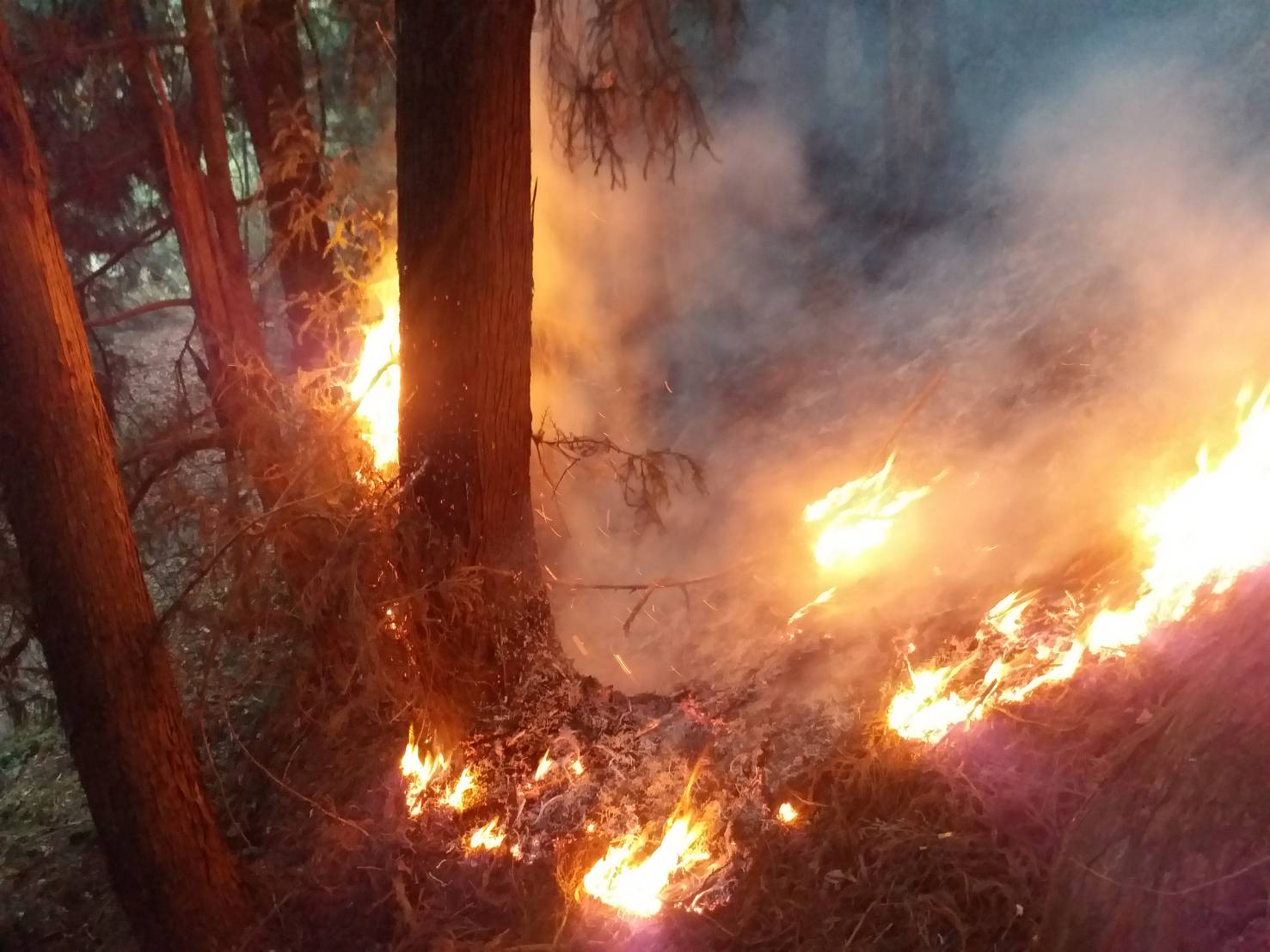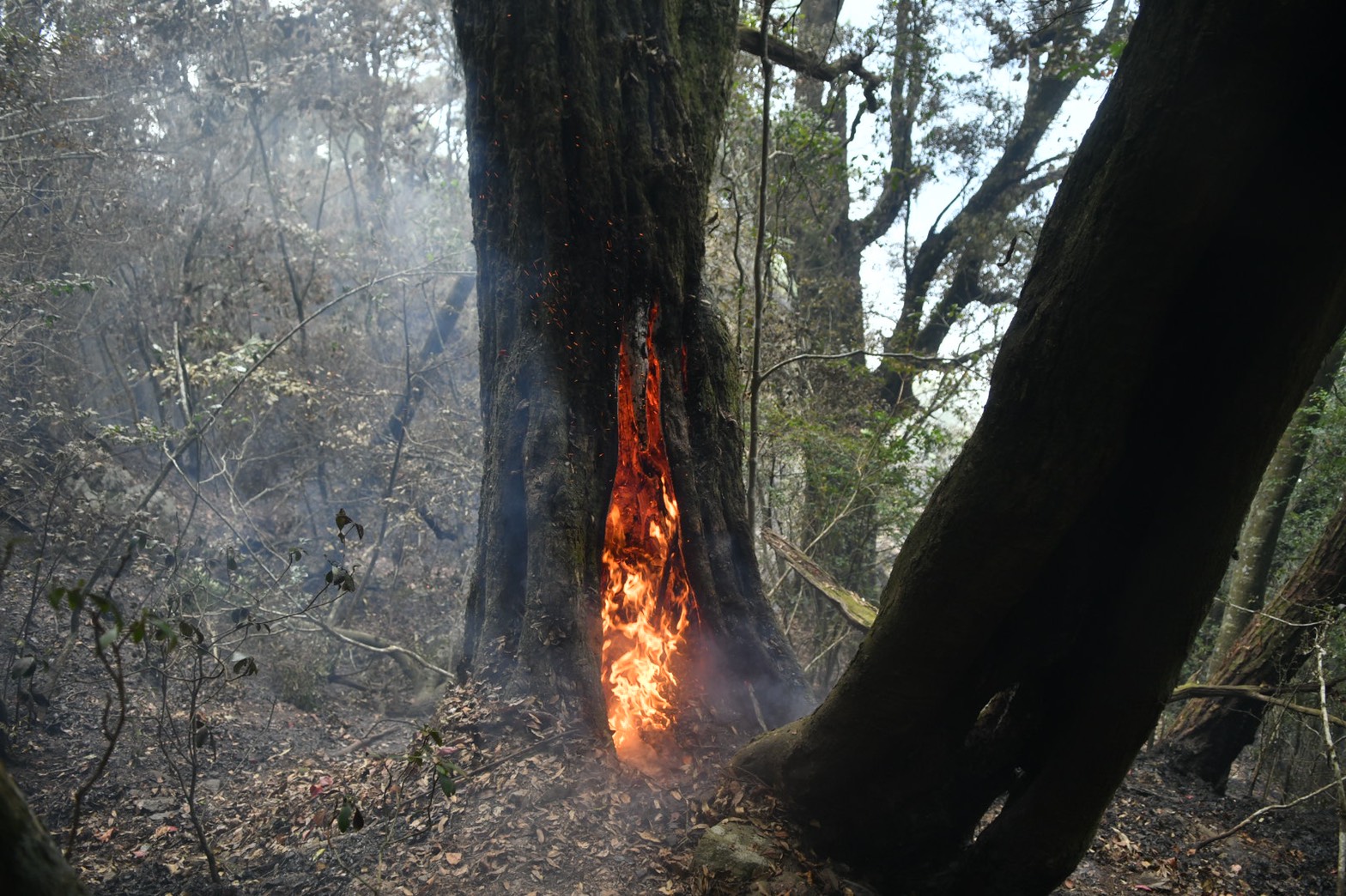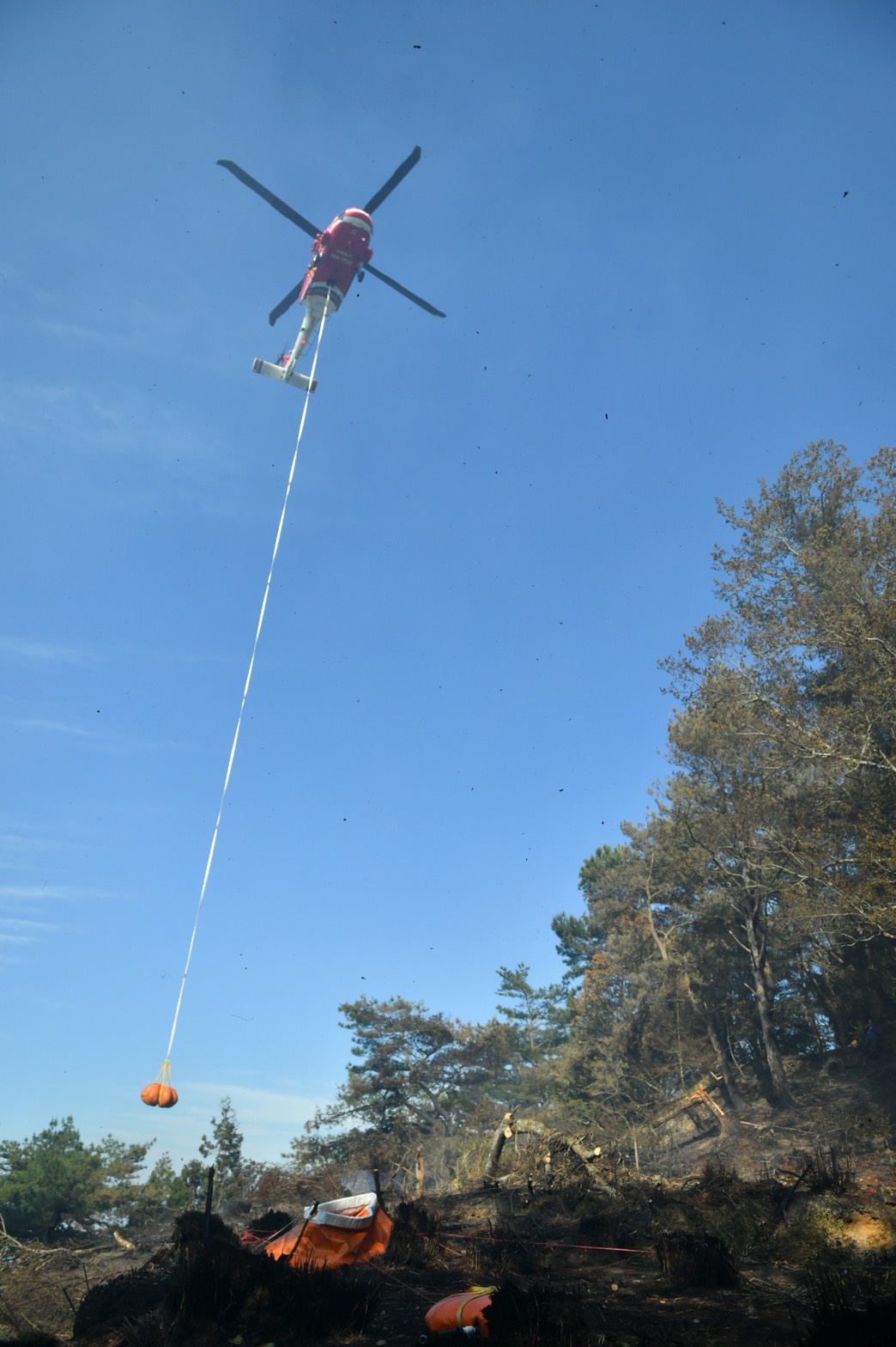 八仙山事業區102林班(馬崙山自然步道) 自5月19日傳出森林火災,東勢林區管理處持續與空中勤務總隊合作,陸空聯合搶救,至今歷時4天3夜,已投入森林護管員等人力約280人次,日夜進行滅火工作,並於火場東西南側均開闢防火線共420公尺,惟因現場堆積落葉腐質層,燃料充足,加上風勢助長火勢,目前延燒面積擴大為4.1公頃。 東勢林區管理處表示,火場位置地處偏遠,部分地區坡度陡峭且土質鬆軟,森林護管員頂著炎熱高溫及濃煙持續穿梭山林火場,開闢防火線、移除燃料,隔絕地表火蔓延,並處理多處立木樹幹火,即使手起水泡、灰頭土臉也不喊苦。截至今(5/22)日空勤直升機已支援3架次,投水14噸,惟現場水源缺乏,為提升救火能量,於昨(5/21)日協請台中市政府消防局支援水車灌注至閉口式水囊,由空勤直升機吊掛至火場,提供現場救火人員,以背負式水袋取水,進行滅火工作,期能有效控制火勢;另吊掛所需糧食物資600公斤,讓救火人員無後顧之憂。 目前火災發生原因尚未釐清,待火勢撲滅後將交由警消單位蒐證確認起火原因,東勢林區管理處呼籲,新冠肺炎疫情已升級至三級警戒,所轄森林育樂場域及步道暫停開放,請民眾勿前往山區,東勢林管處將持續全力搶救,期能早日撲滅火勢。