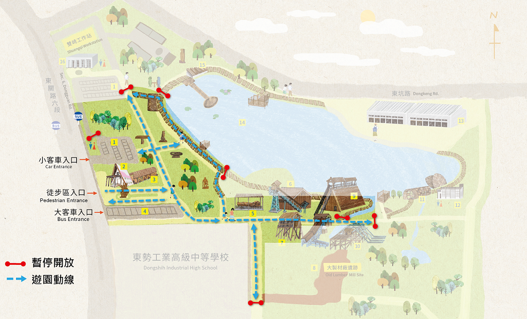 配合中央流行疫情指揮中心宣布110年7月13日三級警戒微解封,依據「林務局森林育樂場域防疫管理措施」,東勢林業文化園區透過防疫指引落實相關措施,於7月14日起開放園區部分區域,以提供國人安全安心及放鬆療癒之休閒遊憩場域。 東勢林業文化園區前身為大雪山林業股份有限公司,為60年代東亞最大之美式一貫化作業製材廠,園區保有大製材廠、燃料倉、鍋爐間、切片倉、貯木池等木材工業設施遺跡,為重拾歷史記憶、提升園區遊憩品質,東勢林區管理處於今年5至10月進行「東勢林業文化園區景觀改善工程」藉由貯木池清淤,利用木排樁區分深淺水域,於深水區域放置漂流木以重現過往製材廠貯木池意象,並於岸邊淺水區域種植荷花,搭配貯木池新設棧道,將提供遊客親水賞景更舒適環境。目前園區環境已做初步整理,整體空間更為明亮、通透,施工圍籬搭配活潑生動的園區歷史、生態解說內容及優美圖樣,結合美學與教育意涵,破除生硬單調印象。 因應施工及防疫需要,貯木池、部分環湖步道及森之屋等場域暫停開放,園區開放時間亦作相關調整,取消暑期7、8月份每日開放,維持原服務時間為週三至週日上午6時至下午6時,週一、週二休園。 東勢林區管理處並提醒,入園人數降載為300人,到達管制人數後採一出一進;入園採實聯制及量測體溫,如額溫高於37.5度請勿入園;遊客並須佩戴口罩,維持室外1公尺社交距離,並避免戶外10人以上群聚。有關園區相關旅遊資訊及管制措施請洽東勢林業文化園區遊客中心:04-25774146。
