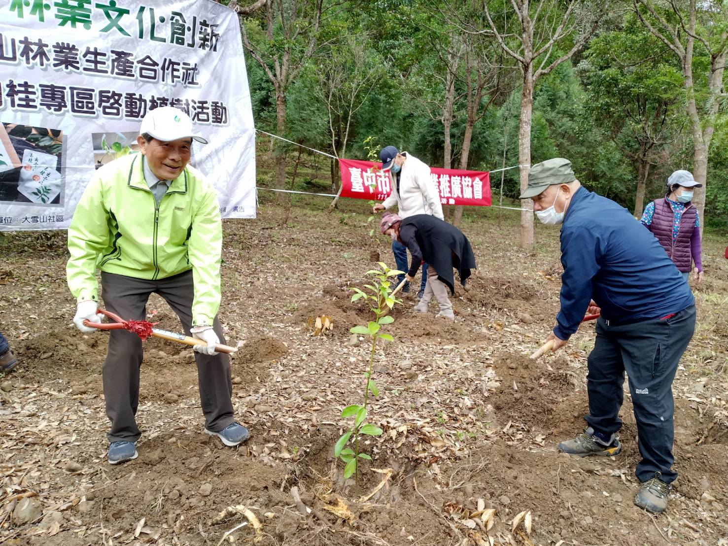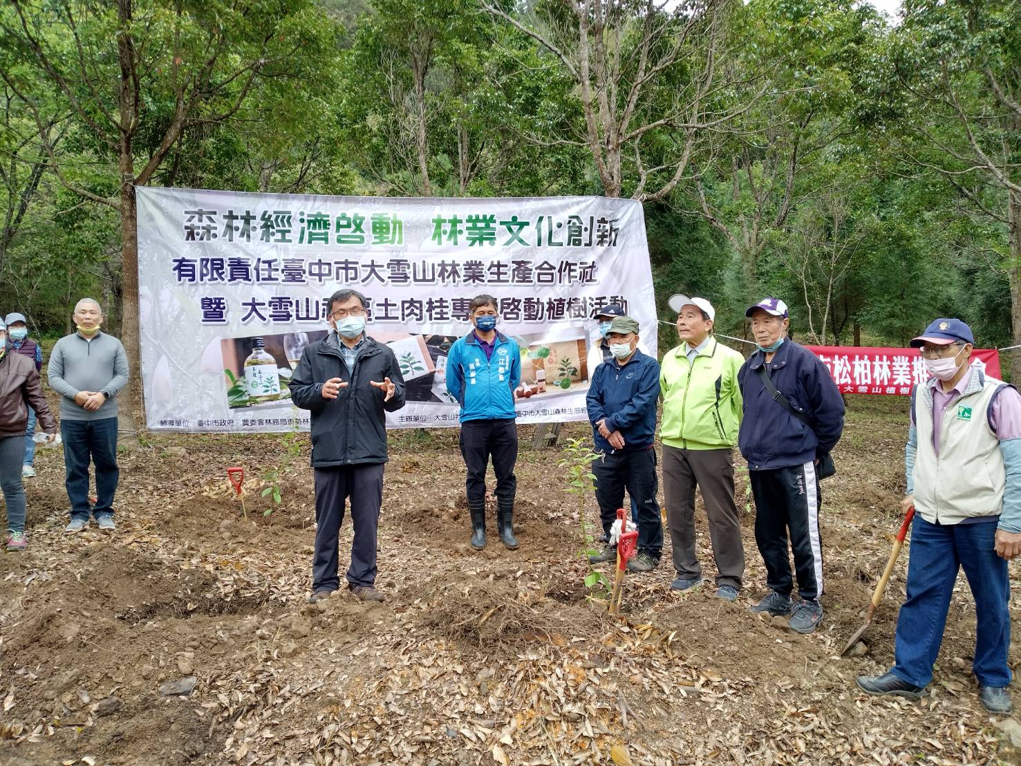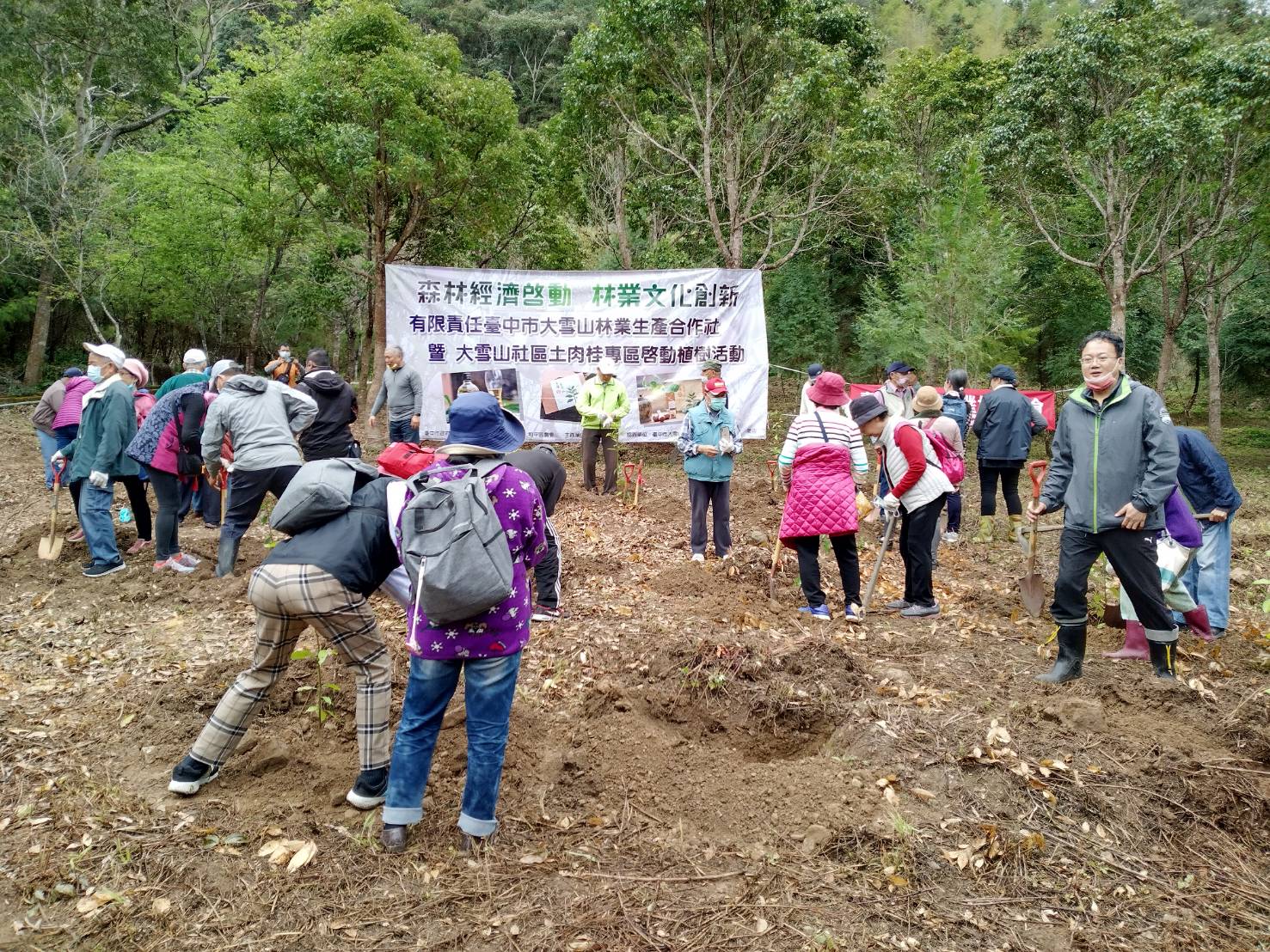 植樹節前夕,為推廣原生樹種及適地適木原則,達到環境永續之目標,林務局東勢林區管理處與臺中市和平區大雪山社區發展協會攜手合作,於今日(2月18日)在臺中市和平區中坑里,偕同在地民眾60餘人,熱情種下當地原生樹種-土肉桂85株,面積約0.1公頃,期待未來推動多元林業利用及產業化,帶動社區經濟發展。 東勢處表示,今天的植樹活動是發展土肉桂產業的第一步,未來將以林業多元輔導方案輔導即將成立的有限責任臺中市大雪山林業合作社,撰擬森林經營計畫,輔導當地栽植土肉桂及推廣土肉桂產業,推動共同行銷,朝向建立大雪山社區之「土肉桂產業」,讓社區林農在符合林地使用下,發展林業多元產業及經濟。 本次所栽植之土肉桂苗木,是該處所培育之母樹林所採種育苗之台灣原生樹種土肉桂,原生樹種能適應當地的環境及氣候,病蟲害發生率較低,栽培管理也容易。為了解土肉桂之品系及成分,該處於110年委託國立中興大學森林系進行轄區土肉桂之開發利用、社區培力課程,目前已開發土肉桂茶包、土肉桂純露飲品及土肉桂複方精油等產品。 東勢處指出,原生種土肉桂是台灣特有種,生長於海拔400~1,500公尺的地區,葉片即有豐富的「肉桂醛」成分,也就是說不用砍樹,只要使用葉子就有足夠的肉桂風味,還可以提煉精油,主要成分「肉桂醛」有良好的殺菌效果,具有抗氧化防腐特性。土肉桂是重要的造林樹種,利用以樹葉、枝條為主,既能提高林農經濟收益,也符合環保永續經營利用之原則。