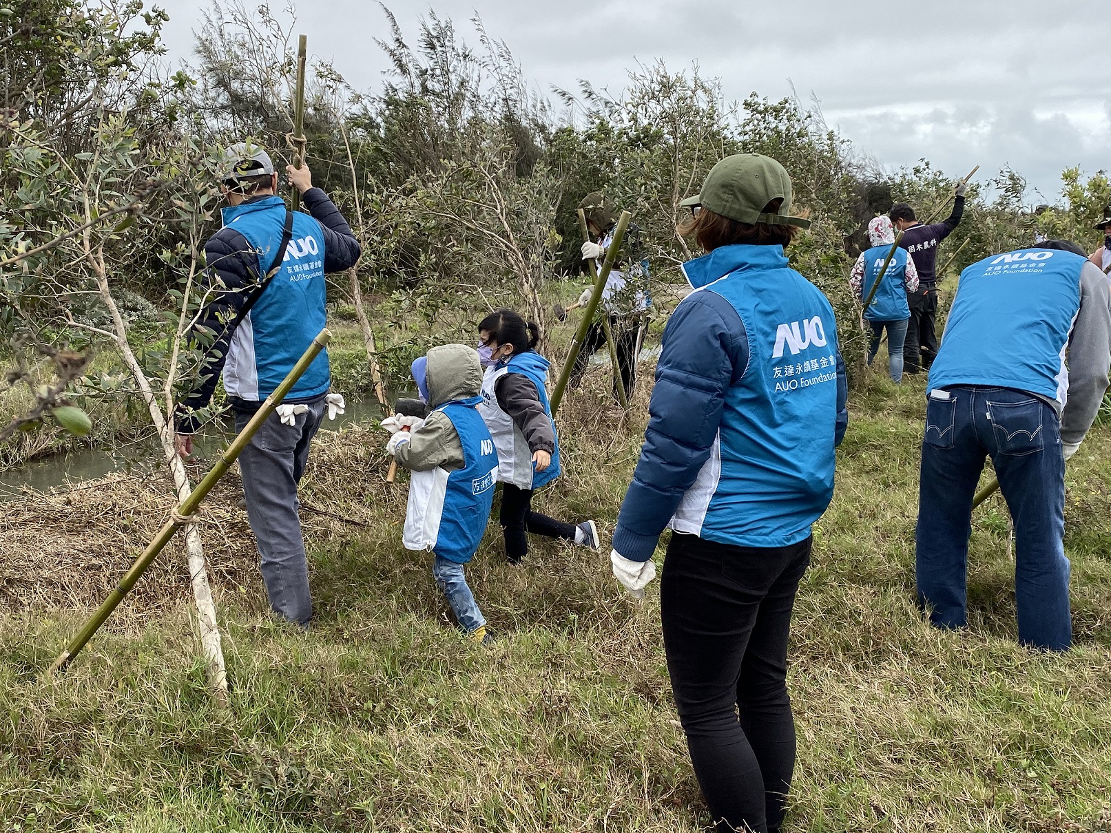 東勢林區管理處自2020年起,與友達永續基金會以合作造林的方式簽訂3年認養契約,辦理台中市清水區高北段0.45公頃造林地撫育工作,以叢狀方式種下黃荊、椬梧等台灣原生樹種800餘株,該造林地為收回之水稻田,小區域有積水情形,補植樹種改栽植耐淹水且具昆蟲蜜源之白千層,共同推動友善生態造林,昨天(12月16日)共動員50人,共同攜手進行護樹活動,以營造健康之林相及多元的棲地,串聯起國土生態綠網的生態廊道。 臺中市清水區高北段位於高北番仔寮保安林,亦為臺中海岸濕地保育軸帶範圍,為濕地生物關注地區,東勢處規劃以生態植被復育方式建構生物棲息環境及提供昆蟲蜜源之多樣性生態環境,但因海岸東北季風吹襲,林木多有傾斜生長,東勢處與友達永續基金會同仁,捲起袖子,合力將傾斜之造林木扶正,重新以竹支架固定,並選擇自然易分解之麻繩材料,不僅環保,也不會讓樹木生長時難以喘息,並達到固定林木不受強風吹倒之危害。 參與護樹行動的友達同仁們,平日忙於研發創新技術, 看到3年前親自種下的小樹苗,如今都已長得跟自己一樣高,並且能以實際行動保護樹木,大夥都很感動。今天更安排台灣野鳥協會志工帶領進行賞鳥活動,看到天空中飛翔的雁鴨及可愛的綠頭鴨、黑嘴鷗、小辮鴴、蒼鷺等鳥類,透過造林護林,營造良好的棲息環境,增加生物多樣性的豐富度,讓平時看慣電腦螢幕的大家都驚喜不已,覺得保護生態環境實在太重要了。 東勢林區管理處表示,感謝友達永續基金會對於員工環境教育的努力,不遺餘力,並積極參與企業認養種樹及護樹,實踐企業社會責任。未來將持續透過公私協力推動棲地復育,及維護沿海濕地之稀少陸蟹族群及陸域棲地,包含海岸林、海岸濕地、沿海農田等,以加強海岸濕地生態系的穩定,逐步完成國土綠網復育願景。