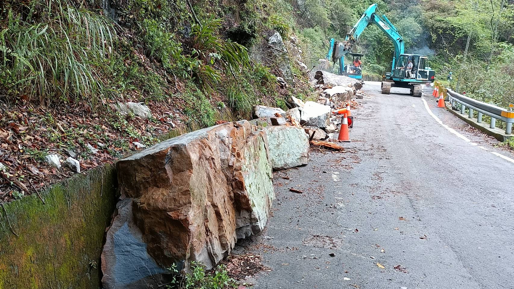 因鋒面過境影響,大雪山林道29K於昨(20)日中午發生崩塌落石造成道路阻斷情形,東勢林區管理處立即調派機具進行搶修,於當日下午2時已先將石塊移置路旁,可單線通行,遊客全數平安下山,並於今(21)日將石塊清理完成,已恢復雙向通行。 因旱季山區林道邊坡乾旱已久,突遇大雨易造成崩塌落石、倒木,東勢林區管理處呼籲民眾,未來數日山區土石仍較鬆軟,請遊客前往大雪山林道、八仙山林道時,請隨時注意周遭環境,上山前留意氣象預報及天候狀況,避免於林道漫步及逗留,以維護安全。