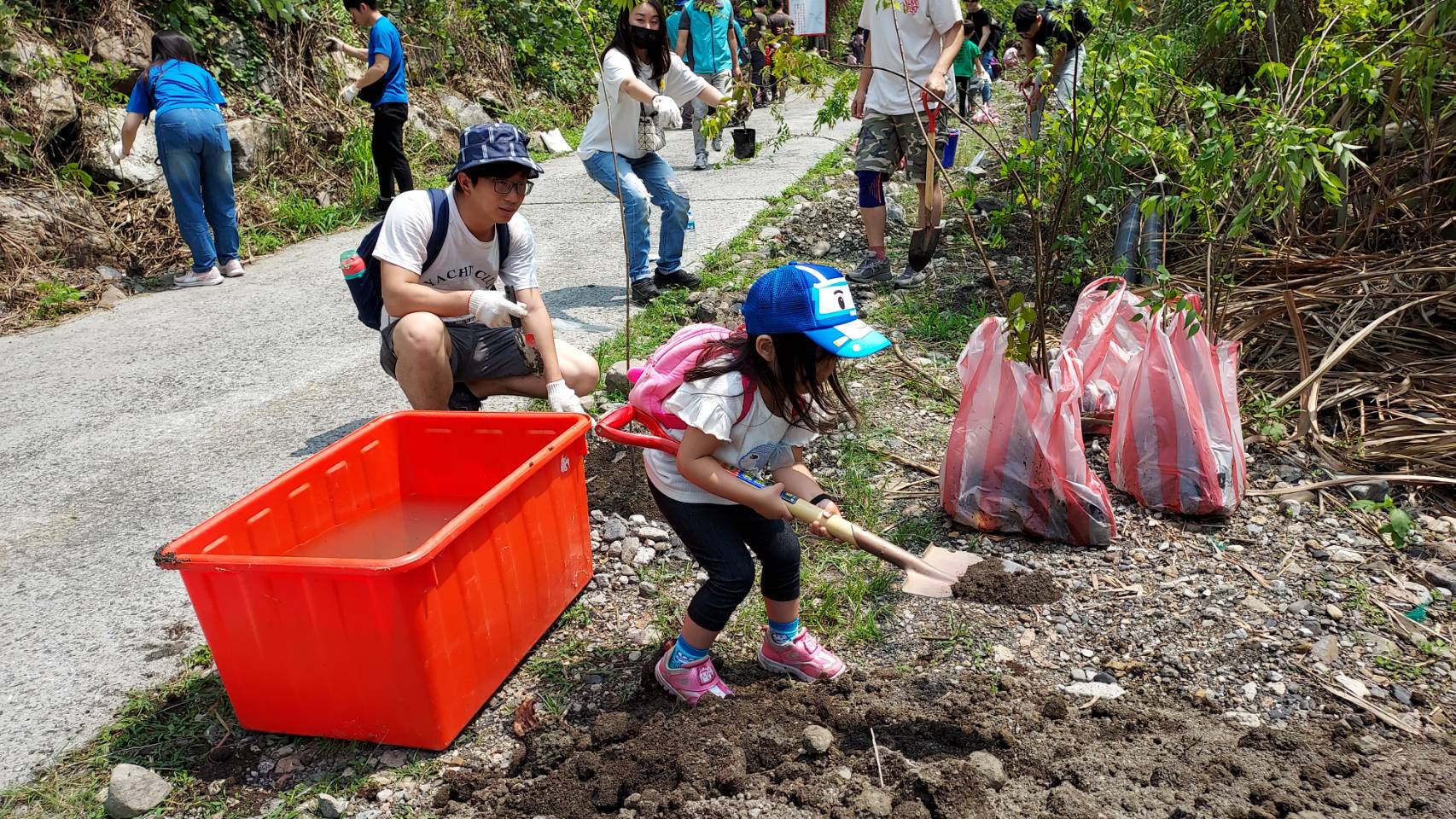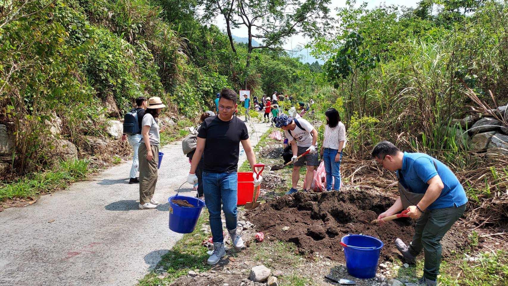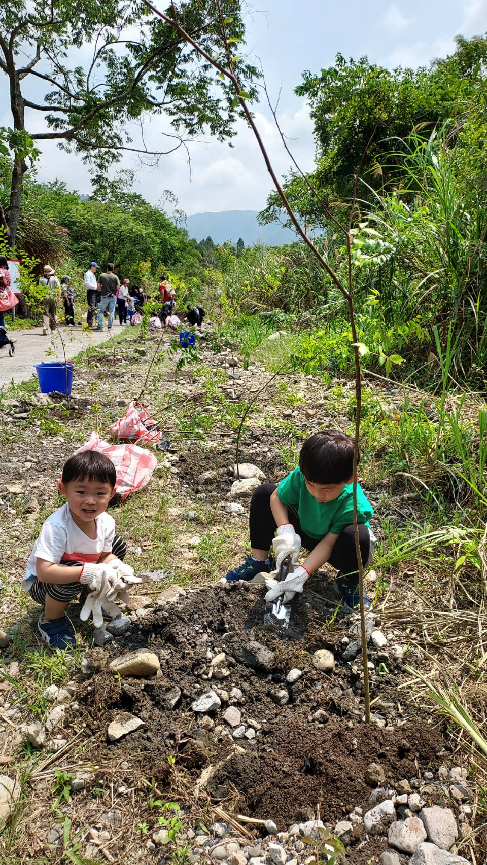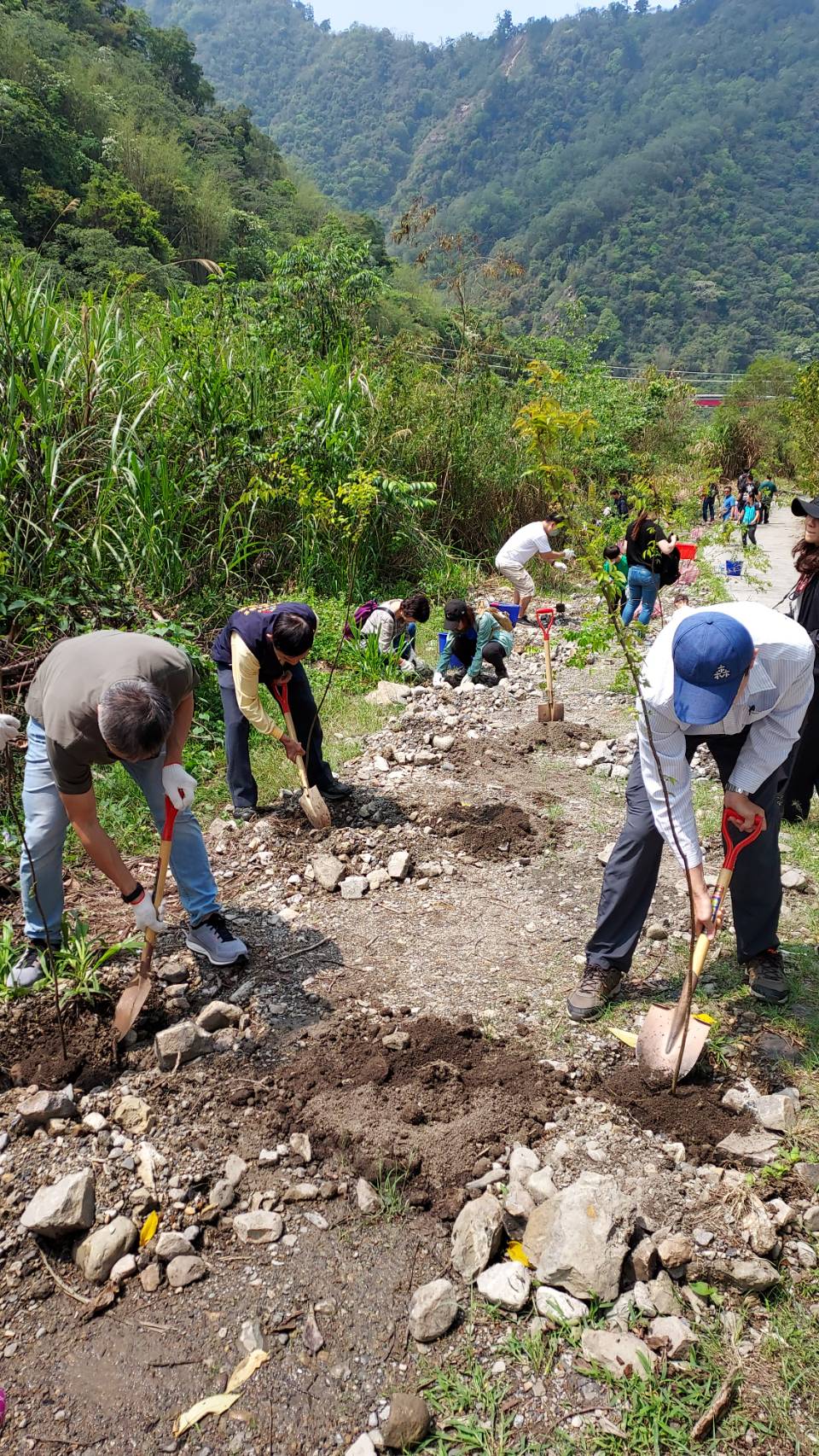 東勢林區管理處與財團法人臺中市磐鈺生活美學文化藝術基金會首次合作,今日(4月23日)在台中市和平區天輪里東卯溪畔,以認養造林方式共同推動國有林植樹造林,並以適地適木原則,種下近400株台灣闊葉樹五木之一的台灣欅樹種,以實際行動營造森林環境,展現對生態環境的重視與責任。 這次植樹造林地點為八仙山事業區第30、31林班,位於台中市和平區天輪里,鄰近天輪社區、國小,當地劉里長及里民也參與今天的植樹活動,與該基金會同仁及眷屬約80人一起種下當地原生樹種~台灣櫸,看到大家熱情的植樹,讓劉里長也豎起大拇指說:讚! 該處表示,透過植樹造林發揮里山精神,友善社區綠化環境,並期待透過企業與林業機關間合作造林,發揮森林多元效益,如水土保持、國土保安及增加碳吸存與生態多樣性,對於企業來說亦可落實社會責任,達成淨零碳排的永續目標。 磐鈺生活美學文化藝術基金會表示,透過建築人、設計人、企劃人等力量,共享所見所學,將其融合激盪出不同的思維觀點,協助推動公益、環境教育、美學文化,在2023年首次與東勢林區管理處攜手合作,期盼將這份為環境努力的心持續延伸,透過造林活動種下樹苗,一起為台灣森林盡一份心力,讓每個人都能成為改善環境議題的種子。