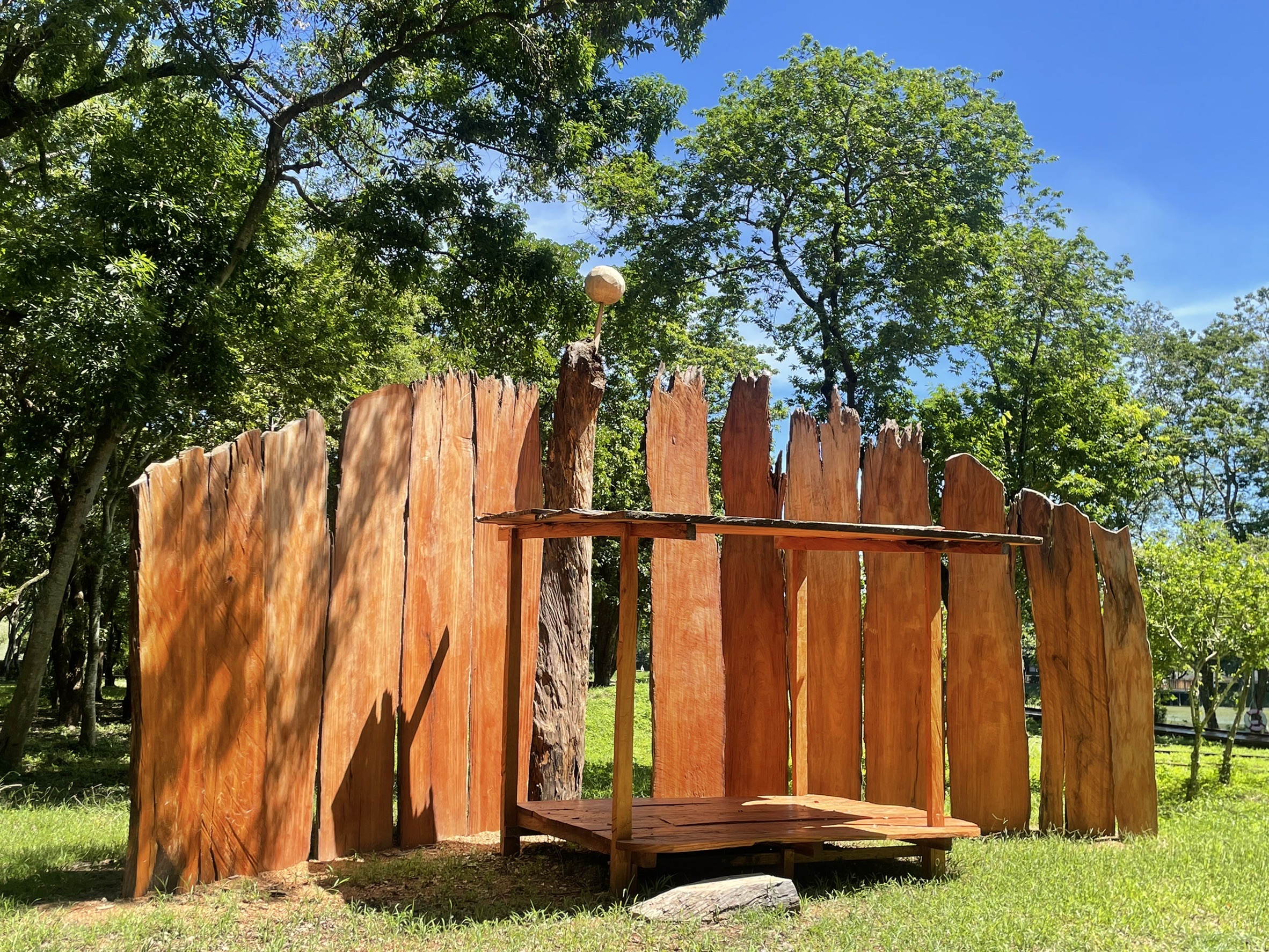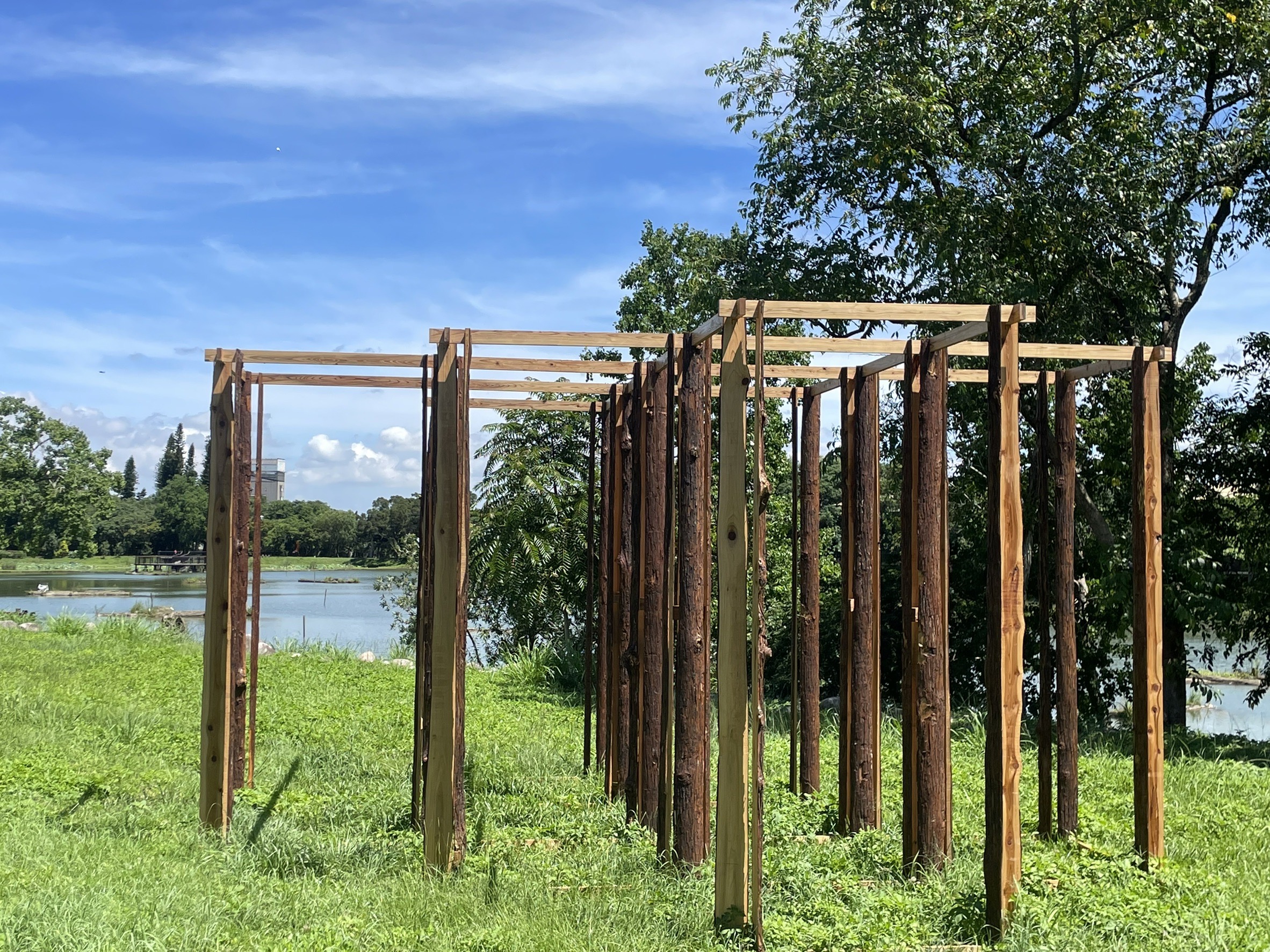 東勢林業文化園區結合客委會第2屆浪漫臺三線藝術季,將園區內的國產材臺灣館規劃設置成台中展區的「服務中心」,提供民眾充滿溫暖木質氛圍的空間。更透過利用珍貴的國產材,在藝術家結合園區現地景觀,巧手的雕琢下,創作了4座各具風格的裝置藝術,即日起至8月27日,歡迎民眾踴躍前往欣賞木藝之美。 國產材漂流木裝置藝術 蘊含永續環境深意 今年第2屆浪漫臺三線藝術季活動,計有來自7個國家的藝術家、91件作品,共75組藝術設計團隊的參與,其中有4件藝術作品,使用東勢林區管理處所提供的漂流木,並融合東勢林業文化園區的地景及空間進行創作。 日本藝術家胡立歐・哥亞利用烏心石、肖楠,巧妙結合樹林環境創作「貓頭鳥」,象徵在這適合居住的淺山生存帶,人們需跳脫以人類為中心思考,學習像動植物般思考與自然交織共生。 來自臺東卑南族的伊命・瑪法琉,以台灣櫸的漂流木創作「生命,只在此山中」作品,邀請人們重新走進森林的環抱之下,開啟人與山林的對話,提示著人與自然不可分割的關係。 創作者羅智信運用紅檜、肖楠的「覓-棲-渡」作品,結合貯木池、漂流木、水鳥雕塑,表達著自然與資源不應只是由人類所獨享,動植物們也是這片風景的重要主角。 張家翎的創作~「只是收成三十年」,以杉木造林木全材利用,結合園區草地,還原一片林地的連續風景,引以記敘臺三線林業的發展脈絡。 國產材臺灣館連續6年獲獎 木作氛圍下輕鬆獲取浪漫臺三線藝術季資訊 2022年,在台北國際建材展展出的「國產材臺灣館」,由林務局和臺大實驗林管理處共同集結產官學研,以淨零碳排的國產負碳質材來合力打造,連續6年榮獲「優良參展企業形象獎」殊榮,也讓國人看見臺灣木竹材的無限潛力。 為能重複利用這些負碳資材,東勢林管處精心挑選了部分材料-杉木、柳杉木構框架及桂竹創意竹編,於東勢林業文化園區重新組裝,巧妙的將木工藝與浪漫臺三線藝術季服務中心做結合,讓民眾在舒適健康的木竹空間環境下,輕鬆獲得藝術季各種文化導覽與客家庄吃喝玩樂資訊。(浪漫臺三線藝術季官方資訊:https://portaly.cc/romanticroute3) 東勢林管處表示,東勢林業文化園區配合「第2屆浪漫台三線藝術季」活動,將陸續推出「山林裡的動物-台日藝術特展」及木工、手作等不同類型體驗課程,相關訊息請隨時關注東勢林業文化園區臉書專頁。