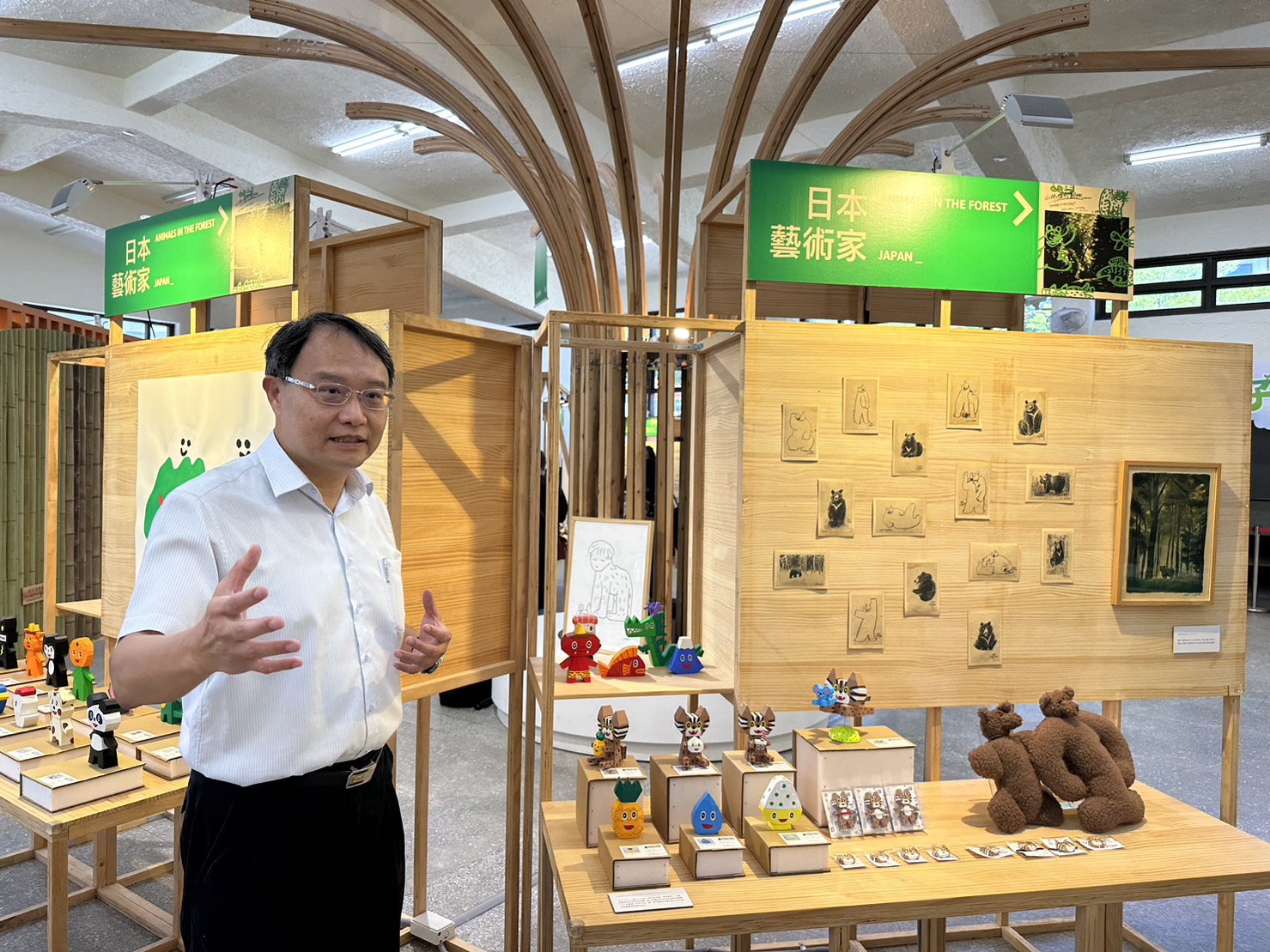 東勢林業文化園區於暑假期間舉辦《山林裡的動物》臺日藝術特展,邀請到5位日本藝術家、1位臺灣藝術家及1組在地團隊參展,藝術家以山林動物為主角,透過平面作品、手作公仔、木製品等多元的藝術風格來展現牠們神秘可愛的樣貌,同時也帶領民眾一同了解生態保育以及人類與野生動物和諧共生之道。展期自6月24日至8月27日,歡迎民眾一起來參與這場難得的藝術盛宴。 臺灣與日本皆蘊含著豐富的山林資源,各自擁有獨特的生命力,也面臨物種滅絕以及生存環境的問題,透過這次的跨國特展,一起發現山林裡的動物。這次《山林裡的動物》藝術特展,邀請5位日本藝術家KENZI MURABAYASHI、yuk tamura、Miki Iwasato、maitoparta、JUNICHI KOKA共同參與,藝術家們各自使用擅長的媒材並以輕巧可愛的藝術風格創作,發掘動物們原有的樣貌和屬於牠們的可愛。 臺灣部分則邀請到藝術家陳廷晉,曾以高雄駁二藝術特區文化公仔「工人漁婦」獲當年度「駁二文化公仔創意大賽」首獎,配合本次《山林裡的動物》藝術特展,創作出全新木雕作品「望遠鏡-忘遠近」系列,作品中現身的動物來自東勢地方創生團隊「大茅埔調查團」的生態調查紀錄,希望透過此次創作引起共鳴與反思,當人們在森林中拿起望遠鏡試圖觀察遠方的動物時,會不會同時錯過近在身邊的動物們,藉此思考人類與動物之間的關係。 《山林裡的動物》藝術特展中呈現東勢地方創生團隊「大茅埔調查團」的生態調查紀錄,自2019年起由東勢林區管理處委託「台灣石虎保育協會」協助輔導該團隊進行生態調查,截至今年6月共紀錄了17種臺灣保育物種,其中包含石虎、食蛇龜等第一級瀕臨絕種保育類動物,團長吳哲銘說,很難想像在大茅埔這樣的淺山地區能夠看到如此多樣的物種,隨著調查的深入,也希望能喚起大眾對於環境保育的關心。 配合《山林裡的動物》特展,訂於7月8日(六)13:30-15:30舉辦「陳廷晉藝術家講座【望遠鏡-忘遠近】」,目前受理線上報名中,歡迎民眾一同來探索藝術創作。 今年夏季,東勢林業文化園區匯聚了許多藝術能量,由客委會舉辦之「2023浪漫台三線藝術季」,有4位藝術家亦選定東勢林業文化園區作為展出平台。另外園區木作、手作課程及主題講座、市集、森林療癒等活動,在暑假期間亦將陸續推出,歡迎民眾踴躍參與。相關訊息請隨時關注東勢林業文化園區臉書專頁。