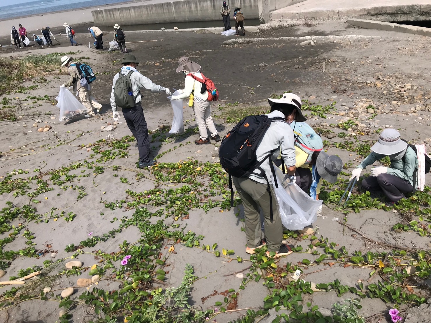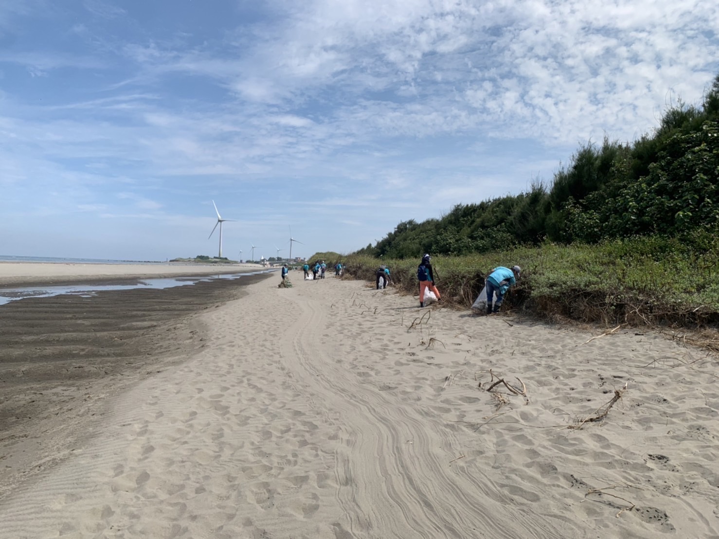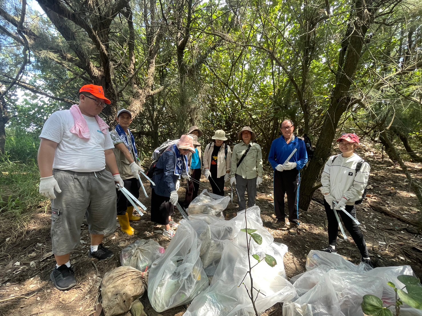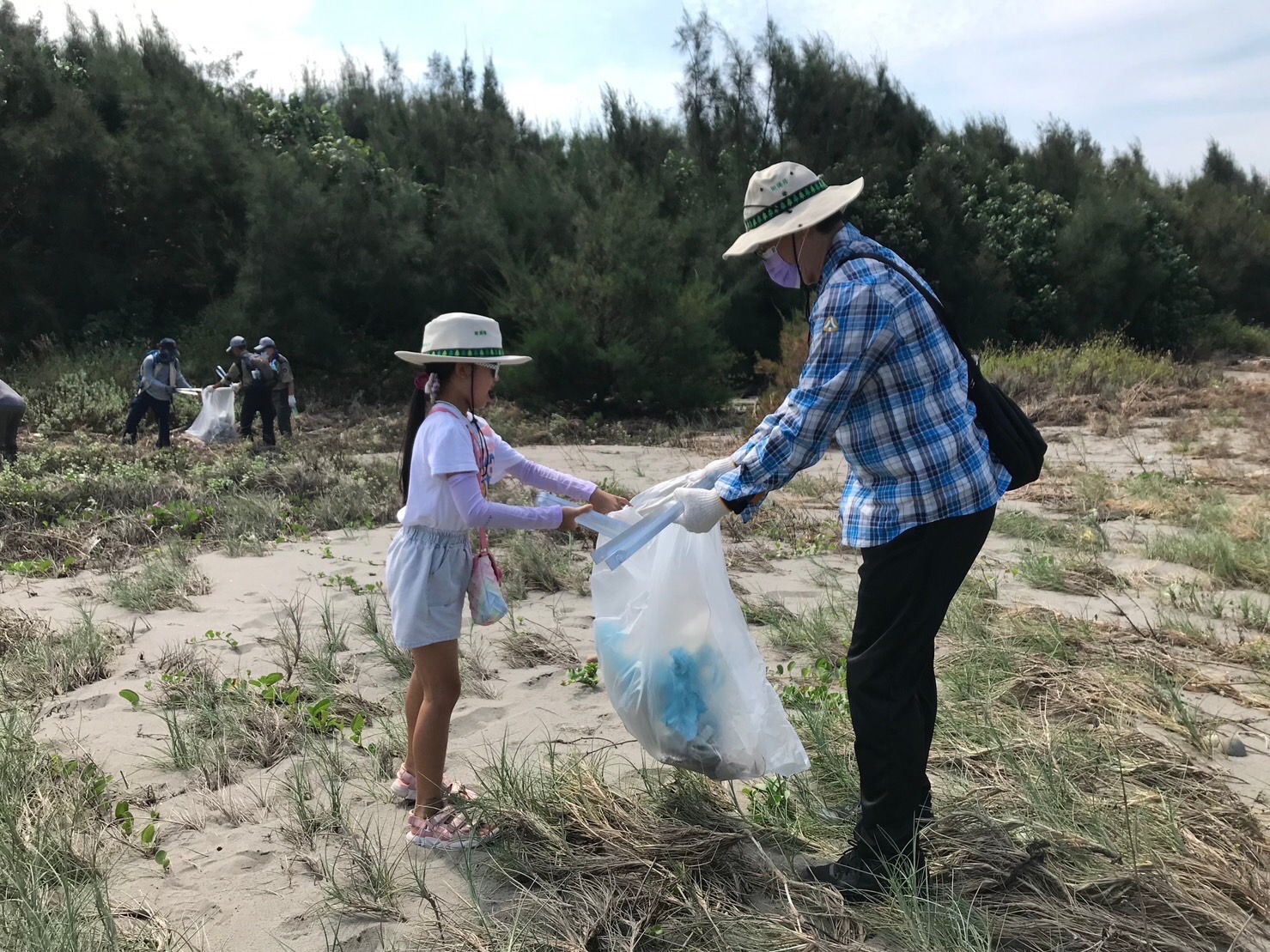為響應「國際淨灘日」及行政院「向海致敬」政策,林業及自然保育署國家森林志工以實際行動維護海洋環境生態,各地區分署同步在國際淨灘日(每年9月第3個周六)辦理向海致敬淨灘活動,林業及自然保育署臺中分署攜手南投分署,號召100人挽袖走入大安紅樹林生態步道旁的第1427號保安林,撿拾清除陸海域廢棄物計390公斤,共同守護台中市海岸及保安林潔淨的環境。 林業保育署臺中分署今(16)日在位於台中市大安區第1427號防風保安林舉辦淨灘活動,更號召南投分署國家森林志工一起清理隨著海浪拍打到沙灘及保安林內的海漂垃圾,志工伙伴們穿梭在保安林林下及帶刺的濱刺麥叢裡,彎著腰清理出寶特瓶、塑膠碗、手搖飲杯、啤酒罐、洗衣精瓶等生活居家常見垃圾,深刻感受到在生活中,只要不使用一次性用具、謹慎處理垃圾,就可以從源頭減量,減少對環境造成衝擊。 臺中分署表示,鄰近海岸邊的保安林,具有防風及防砂功能,能保護保安林內部住家及耕地不受海風侵害,近期接連而來的颱風及豪雨,將海洋中垃圾大量捲到沙灘上,有生長良好的保安林將垃圾阻擋留滯在林緣邊,有效減少住家及耕地遭受危害。 此次淨灘活動由林業及自然保育署國家森林志工發起,於全臺灣北、中、南、東四處海岸保安林同步辦理「向海致敬-實際行動守護海洋」活動,除發揮志願服務的精神,更希望透過活動喚起民眾對生活周遭保安林及海岸環境的維護意識,瞭解海洋廢棄物的議題及垃圾減量的觀念,進而以實際行動守護海洋,打造乾淨又美麗的海岸線,以永續保安林的環境生態。