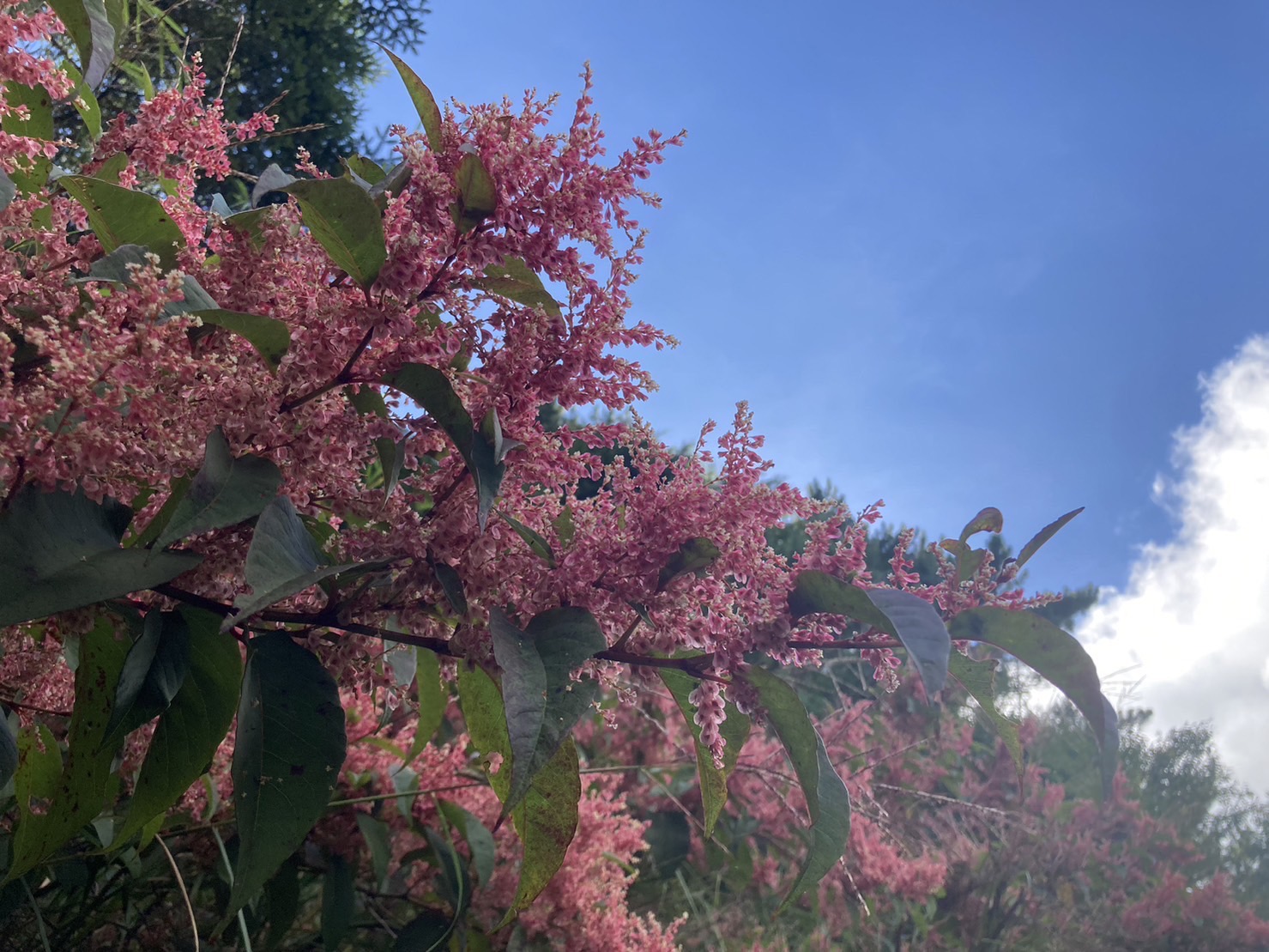 林業保育署臺中分署表示,時節已入秋,大雪山國家森林遊樂區氣溫約在15-20度之間,嫣紅的虎杖現正綻放中,虎杖淡粉色的花與粉紅色的瘦果,堪稱是高山裡最美的野花,在藍天的襯托下,更顯艷麗,大雪山林道48-49K、49K天池、神木步道是最佳觀賞地點,挑一個最佳角度就能拍出網美照。八仙山國家森林遊樂區溫度正舒爽,區內步道老少咸宜,漫步在林中,是連假期間,全家出遊的最佳場所。