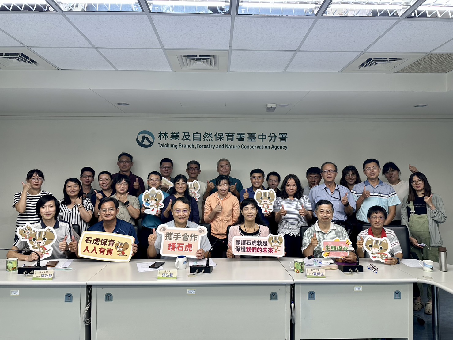 林業及自然保育署臺中分署今(25)日與新竹分署、南投分署共同召開112年度瀕危物種-石虎保育跨區域聯繫平台會議,並邀集新竹縣、苗栗縣、臺中市、南投縣、彰化縣等地方政府共同參與,針對縣市交界處強化跨域合作,同時表揚今年5月份桃山部落協助通報及救傷受困石虎的族人,讓石虎保育及棲地串連工作不只跨機關,也注入在地居民合作力量。 林業保育署新竹、臺中、南投分署於111年成立「瀕危物種-石虎保育跨區域聯繫平台」,針對臺灣石虎主要分布區域苗栗、臺中、南投等地,積極串聯淺山關鍵棲地,建構石虎族群移動廊道,今年由臺中分署主辦,除邀請新竹縣、苗栗縣、臺中市、南投縣、彰化縣政府共同參與外,另邀國立嘉義大學、生物多樣性研究所、社團法人石虎保育協會、野聲環境生態有限公司、觀察家生態顧問有限公司等長期投入石虎族群監測及保育推動專家學者參與指導,在石虎樣區長期監測必要性上取得共識,後續也將針對不同棲地型態進行更大尺度的討論規劃。 林業保育署臺中分署指出,臺中地區為連接苗栗及南投地區石虎族群關鍵位置,廊道串聯是該分署在石虎保育上關注的重要議題,依據該分署近期在烏溪流域進行石虎族群監測調查發現,石虎會利用烏溪流域及筏子溪匯流口作為移動廊道。在此次石虎保育跨區域聯繫平台會議中,與各地縣市政府達成共識,一起強化烏溪流域臺中市、南投縣、彰化縣交界區域石虎保育宣導,落實石虎棲地跨域串聯行動。 林業保育署臺中分署表示,今年5月桃山部落族人發現雪山坑溪附近有石虎受困陷阱,主動通報並協助救援,推測該隻石虎會利用苗栗縣大安溪流域及雪山坑溪周邊棲地做為移動廊道,經生物多樣性研究所照養後,已於7月20日由臺中市政府農業局及社團法人石虎保育協會野放回原棲地,透過野放後追蹤發現,這隻石虎目前仍在雪山坑溪及烏石坑溪周邊棲地活動,該分署透過這次跨域平台會議,與臺中市政府農業局共同表揚協助救傷部落族人,該局也特別製作感謝狀,鼓勵在地居民共同參與石虎保育工作;桃山部落為罕見的石虎與黑熊共域棲地,部落已透過黑熊生態服務給付參與棲地巡守外,未來也將透過生態服務給付參與石虎棲地巡護工作,林業保育署臺中分署呼籲,民眾如有發現野生動物受困情形,請立即撥打通報專線1999,0800-000930,由專人協助救援。 石虎目前主要族群分布在苗栗、臺中及南投淺山地區,面臨棲地減少破碎與品質下降、路殺等威脅,林業保育署新竹、臺中、南投分署透過「瀕危物種-石虎保育跨區域聯繫平台」持續與各縣市政府及專家學者攜手合作,在跨域整合參與下,建構人與石虎和諧共處永續環境,提供石虎安全棲地廊道。