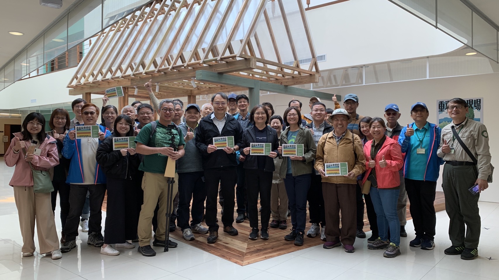 為推廣大雪山國家森林遊樂區的資源特色,提供豐富多元的旅遊體驗,林業及自然保育署臺中分署於大雪山遊客中心策劃全新的主題展《重返林業現場》,並於今(4/12)日溫馨開幕,更邀請鄰近的大雪山社區及臺中市野生動物保育學會共襄盛舉,於現場推廣在地農特產品及宣導保育理念。 林業保育署臺中分署表示,嶄新的大雪山遊客中心以《重返林業現場》為主題,規劃5大特色情境,包含「林業歷史」、「森林守護」、「賞鳥」、「有熊森林」、「植物世界」,不論是從大雪山林業歷史,還是大雪山所蘊含豐富的野生動植物資源,展區將成為遊客探索山林的起點。 遊客中心《重返林業現場》主題展,入口意象是曾服役於大雪山林場的集材機,修復後再重新展示。為讓遊客感受《重返林業現場》,規劃展示1959年大雪山林業公司時代,林業工業化、林道開發、卡車運材等歷史照片及各種伐木工具,如乘坐時光機讓遊客重返當時的林業現場。而當代山林的守護者,以實體展示森林護管員的工作裝備,並透過影片介紹上山巡查及危險的救火行動。 林業保育署臺中分署指出,大雪山國家森林遊樂區是賞鳥聖地,特別以標本介紹大雪山常見的特有種鳥類,透過數位APP更能掌握鳥類生態。另為讓遊客認識台灣黑熊,展示了黑熊誘捕籠等研究用具、復刻黑熊爪痕,並宣導如何安全地在有熊森林中和諧共處;大雪山精彩的植物世界,展示雪山神木與小神木所鑽取的樹芯,了解紅檜合併木樹齡的秘密,透由該分署同仁攀樹所紀錄的相片,看見小神木樹梢上的生態樣貌,一連串林業現場的真實紀錄,讓到場觀賞的遊客都大呼過癮,也更認識林業工作的艱辛。 最吸睛的莫過於遊客中心中庭處,以國產材疊砌而成的小木屋櫃台及文創賣店,展售大雪山各式森林系文創商品,如大雪山特色蕨類抱枕、集材車、有熊森林帽,還有一系列國產材商品,從大雪山現場取得的扁柏枯立木切片、森之木琴到相思木擴香吊飾等,引入全材利用概念,呈現多樣化的山林特色。為慶祝《重返林業現場》展示開幕,即日起至4月底,除特價商品外,其餘商品95折優惠,歡迎民眾上山觀賞及選購。