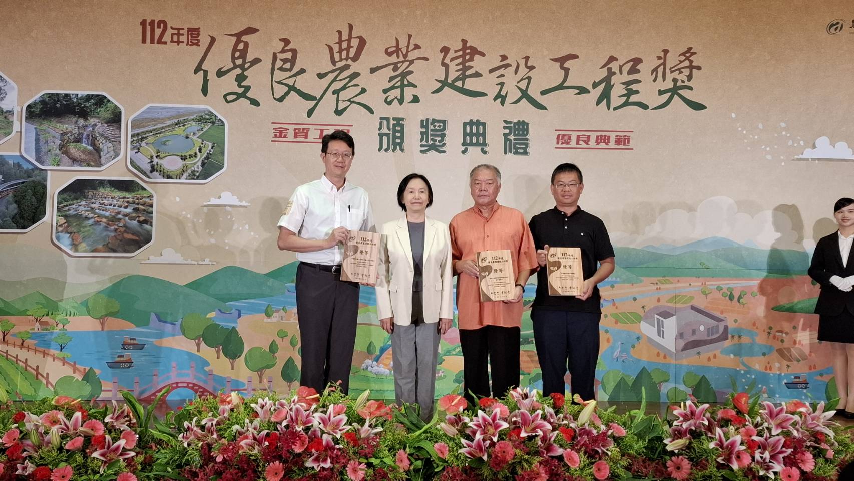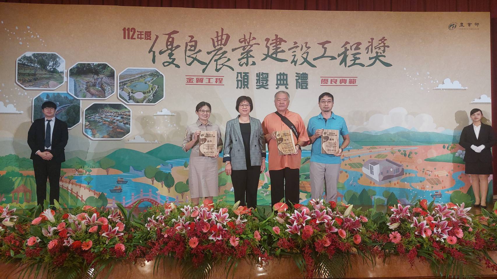 農業部於7月12日辦理112年度優良農建工程獎頒獎典禮,林業及自然保育署臺中分署共拿下3個獎項,分別獲得治山防災類-「雪山坑防砂壩整建工程」優等、「裡冷溪下游治理工程」佳作,設施類-「甲區44林班林業灌溉使用及森林保護水池工程」亦獲得佳作,創下該分署連續十年得獎紀錄。 林業保育署臺中分署說明,雪山坑防砂壩整建工程同時亦獲得行政院公共工程委員會「第二十三屆公共工程金質獎」水利類佳作獎殊榮,該工程設計初期即以工程生態友善機制及設施,以符合現地生態需求,更積極徵詢公私單位多方建議,施工時運用當地石材作為橋樑基礎,亦同時維持縱向生物通道。裡冷溪下游治理工程,因既有構造物磨蝕嚴重,危及以往治理成效,另縱向落差達4m高,影響溪流生態,採取以現地塊石資材設計作為保護設施,與周遭環境融合,呈現自然協調感,兼顧景觀、生態及減碳效益,經過魚類調查及紅外線照相機監測,已有魚類棲息於此,成功營造友善生物棲地。 由於梨山地區林業經營及空中森林火災救援之需求,臺中分署辦理甲區44林班林業灌溉使用及森林保護水池工程,規劃建置300噸灌溉用水塔2座及360噸灌溉及空中用取水池1座,平時供附近收回地造林木使用,火災時供直升機救援取水使用。取水池配合空勤總隊直升機救災時水袋每次取水量需求設計,採用下窄上寬圓形池體,可迅速提升水位以利取水,池壁以顏色及標尺標示可立即確認水位高度,兼顧林業經營與防救災雙重效益。 臺中分署表示,因應氣候變遷及生物多樣性等環境需求,未來除積極提升工程品質,亦將環境生態、節能減碳等構想融入工程設計中,以達到「永續森林經營,維護生態保育」的目標。