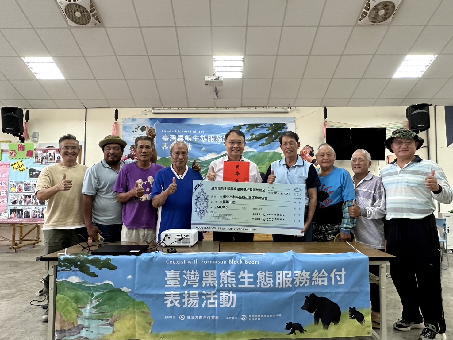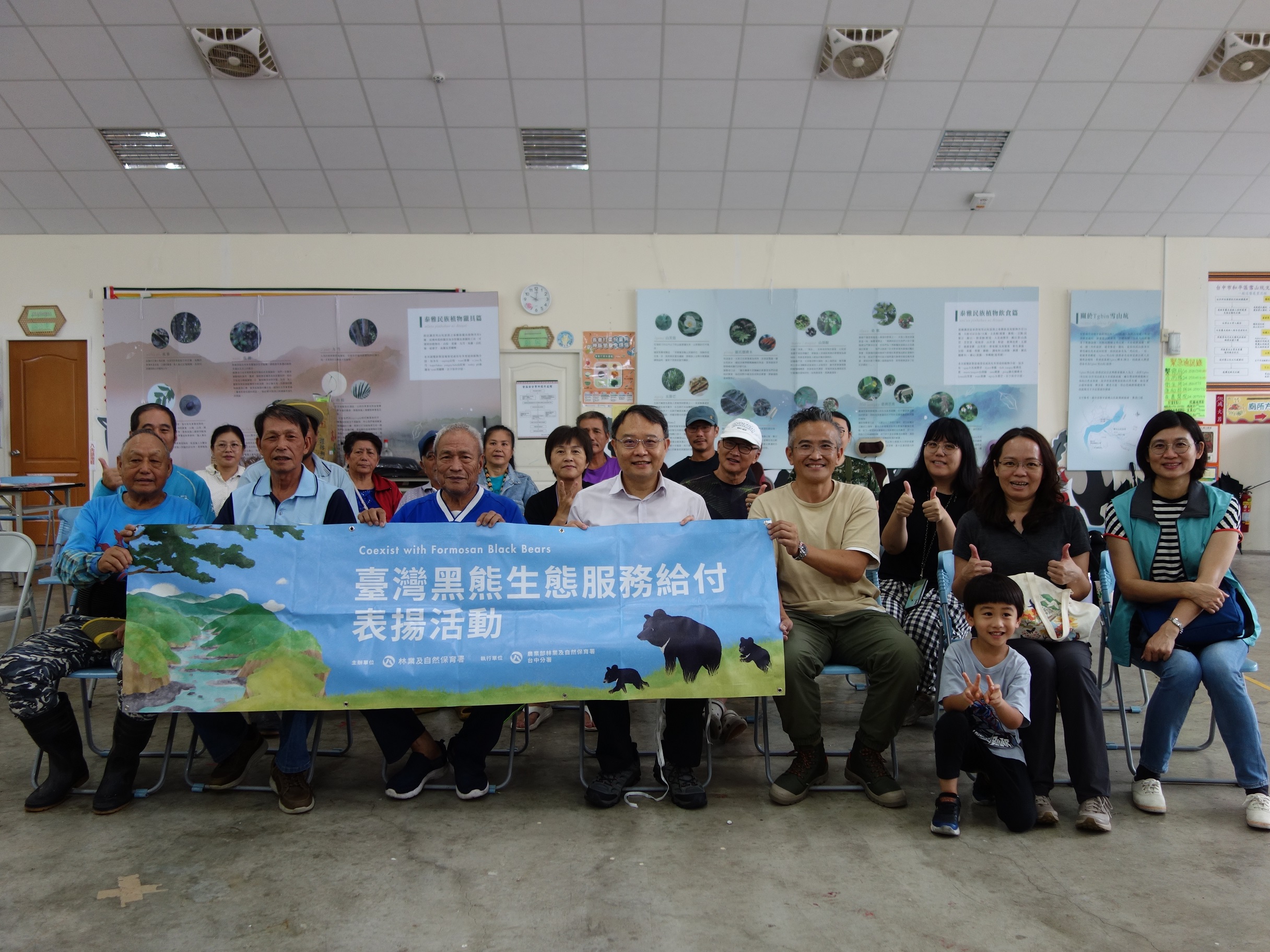 林業及自然保育署臺中分署5月在大安溪上游原始森林野放的臺灣黑熊Ziman,6月間山區連日大雨,天候不佳,斷斷續續接收到的頸圈衛星發報器訊號顯示其滯留於同一地點,6月19日進一步又收到疑似死亡訊號,臺中分署隨即派員前往搜尋,2日後在一處大崩壁下方的溪谷尋獲已死亡多日的Ziman遺骸,該地人跡罕至,現場並無任何人為活動跡證,但由於屍體已腐爛,也難以進一步推斷死因。正當分署與協助野放的桃山部落族人惋惜不已時,部落卻通報接連拍攝到一隻母熊帶兩隻小熊,以及另一隻亞成熊的影像,讓部落族人感動又雀躍,也欣慰Ziman雖然離世,但友熊森林在族人的守護下生生不息。 臺中分署表示,桃山部落是在112年5月開始參與林業保育署的黑熊生態服務給付計畫,族人本(7)月於部落周邊山區執行棲地巡護時,從之前架設的紅外線自動相機,接連發現記錄到有母熊帶著兩隻小熊漫步林間的影像;還有另一隻推測是脫離母熊不久的亞成熊,也在鏡頭前擺著屁股提起腳搔癢,逗趣的模樣讓族人十分欣喜。這也是桃山部落去年參與黑熊生態服務給付計畫後,首次以自動相機拍攝到黑熊影像。 執行監測工作的桃山部落黑熊巡守隊員潘文明,本身也是一名原住民獵人,當他從所架設的自動相機驚喜發現拍到母熊帶著兩隻小熊在林間漫步的身影,看著小熊緊跟在母熊身後,還調皮地逗弄相機,潘文明感動到眼眶泛淚。而在同月份,桃山部落的另一條黑熊棲地巡守路線上的自動相機,也拍攝到一隻亞成熊活潑現蹤,與會的陳榮文副頭目表示,拍攝到亞成熊的地點是他的傳統獵場,常觀察到黑熊在此出沒的痕跡,在得知臺中分署推動黑熊生態服務給付後,便主動提供資訊,將此路線納入巡守隊監測範圍,因此才有今天豐碩的成果。 參與巡守的族人們表示,臺灣黑熊與他們共處在同一片山林,在自然的生命輪迴中,牠們像是自己的家人,命運緊密相繫。Ziman生命的流逝固然令人傷感,但看見黑熊族群繁衍生生不息,更堅定他們守護家園的信念。 臺中分署分署長張弘毅今(26)日親自到桃山部落頒發獎勵金五萬元給黑熊巡守隊,感謝部落用心守護黑熊與自然棲地,同時關切凱米颱風過後,對部落影響及需協助情形,族人對於台中分署的關切,表達溫馨及感激之意,並指出部落並無太大損失。族人有感於部落週遭黑熊棲地巡守的重要性,除了巡守隊的成員參加外,也扶老攜幼出席這項盛會。張弘毅說,目前在大安溪沿線已有來自5個部落的2個組織參與黑熊生態服務給付計畫,執行生態監測與棲地巡守,未來希望能有更多山村部落加入成為合作夥伴,協力守護友熊家園。 臺中分署也表示,山區農民若有防治獸害或原住民有傳統狩獵需求,請洽分署或就近的工作站免費申領不會誤捕黑熊與石虎的改良式獵具;若發現野生動物受困、滋擾或入侵農舍,請即刻撥打臺中市政府服務專線1999、林業保育署24小時通報專線0800-000-930。若不慎誤捕或誤傷保育類野生動物,只要立即通報、協助救援,就不會被究責。
