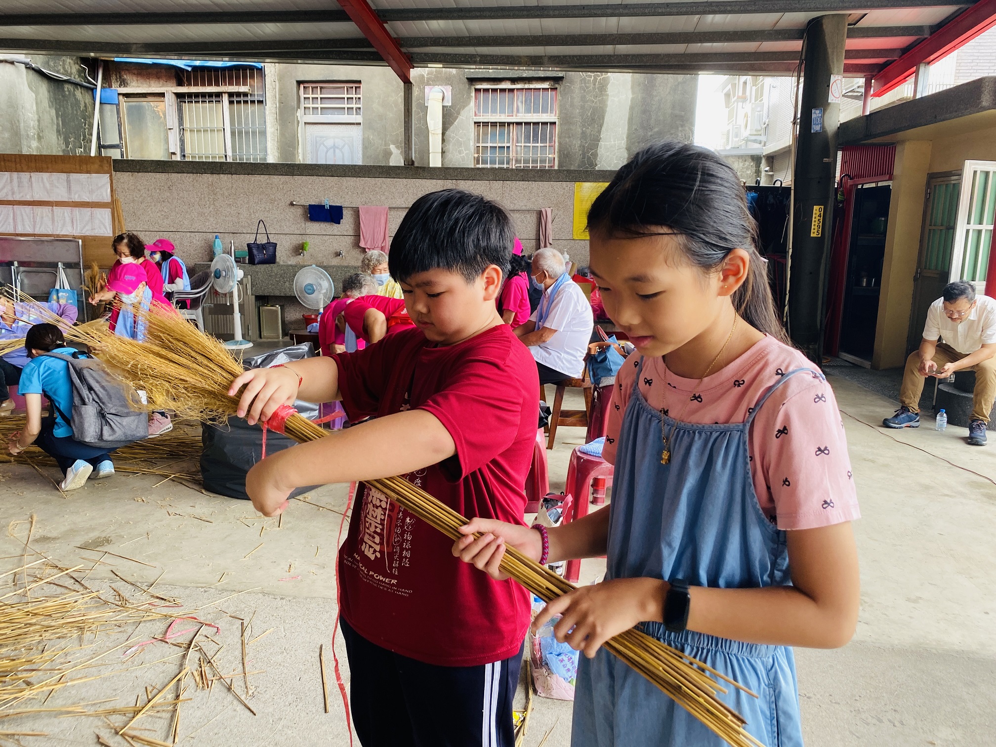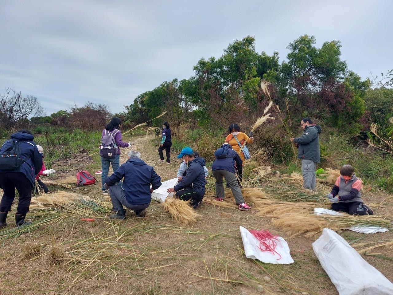 林業及自然保育署臺中分署輔導臺中市大肚區瑞井社區發展協會申請社區林業計畫,結合社區居民力量,進行1404號土砂捍止保安林步道巡護工作,並將大肚臺地外來入侵種植物大黍移除後,作為傳統文化綁菅芒掃帚活動材料,在井仔頭挑水節活動,與在地民眾一同體驗瑞井特色文化。 已逾百年歷史的瑞井社區,早期家家戶戶都會使用當地植物白背芒綁成掃帚,但隨著外來入侵種植物大黍入侵大肚臺地,其在秋冬乾季逐漸枯黃,成了火災的主要燃料,使得大肚臺地容易引起火燒山,造成原生芒屬及其他植物式微。為移除外來入侵種,以及傳承傳統文化,瑞井社區規劃將入侵種植物大黍移除後,與白背芒等一同作為綁菅芒掃帚的材料,現場約50位民眾參與,並由3位經驗豐富的職人指導,讓大人與小孩共同體驗傳統文化,也為生態保育盡份心力。此外,活動當天協會特別邀請荒野保護協會資深解說員蔡志忠,帶領民眾走訪瑞井步道,深入探訪早期居民辛苦取水的歷史遺跡。 林業保育署臺中分署表示,瑞井社區位於臺中分署國土綠網大肚臺地淺山保育軸帶,為了解決大肚臺地野火的議題,已於保安林種植白肉榕、廣東薔薇、灰木、厚殼樹等原生樹種,以營造生物多樣性棲地。該分署藉由社區林業計畫與瑞井社區發展協會合作,凝聚在地居民共識,期望透過公私協力,與社區共同保護及復育原生植群生態,並將在地傳統文化傳承保留。