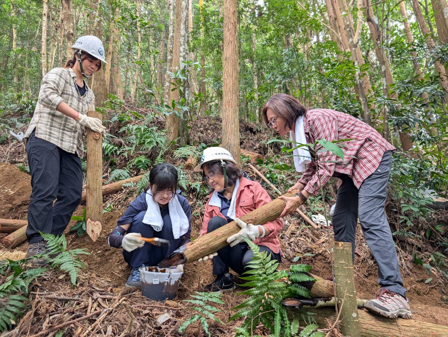 林業及自然保育署臺中分署為推廣手作步道的概念與價值,於10月18日在橫嶺山步道舉辦了手作步道活動,運用現地材料,以友善環境工法處理步道上樹根裸露的問題,將橫嶺山步道300公尺的浮根步道,打造成自然、安全且平緩之步道,為橫嶺山步道的山林原始樣貌再添新氣象。 林業保育署臺中分署表示,雨水沖蝕如果發生在樹木根部,加上人為頻繁踩踏,表土流失後樹根就會裸露於步道上,產生深淺不一之凹陷現象,造成步道行走面不平整,影響舒適度及容易被絆倒,是常見的步道浮根課題。這次臺中分署特別邀請手作步道專家-伍玉龍老師,指導該分署同仁及志工共26人,使用現地既有材料,解決橫嶺山步道浮根問題,整理成紮實、友善山友行走的土木階梯步道。 為改善橫嶺山步道上樹根裸露的狀況,志工們尋找合適的枯、倒木,裁切成合適的尺寸,於浮根步道上構築成階梯,以保護裸露的樹根,再搜集土壤填滿夯實,過程就像蜜蜂般來回不停地穿梭在森林裡,流的都不知是汗還是淚了,但轉念一想平常都是走別人做好的步道,這次可以做步道讓更多人走,內心真的是滿滿成就及感恩,也讓志工們從手作過程中學習並體驗到與自然生態和諧共存的工法,共築優質的森林步道。 林業保育署臺中分署指出,將持續以手作步道理念優化步道品質,更推廣無痕山林準則,呼籲民眾可以先從進入山林做好事前準備、不走捷徑、行走在既有步道上等無痕山林原則開始做起。更歡迎熱愛山林、想要投入山林環境維護的團體,洽詢臺中分署(04-25150855轉335)了解合作方式等資訊,一起「手」護台灣山林環境。