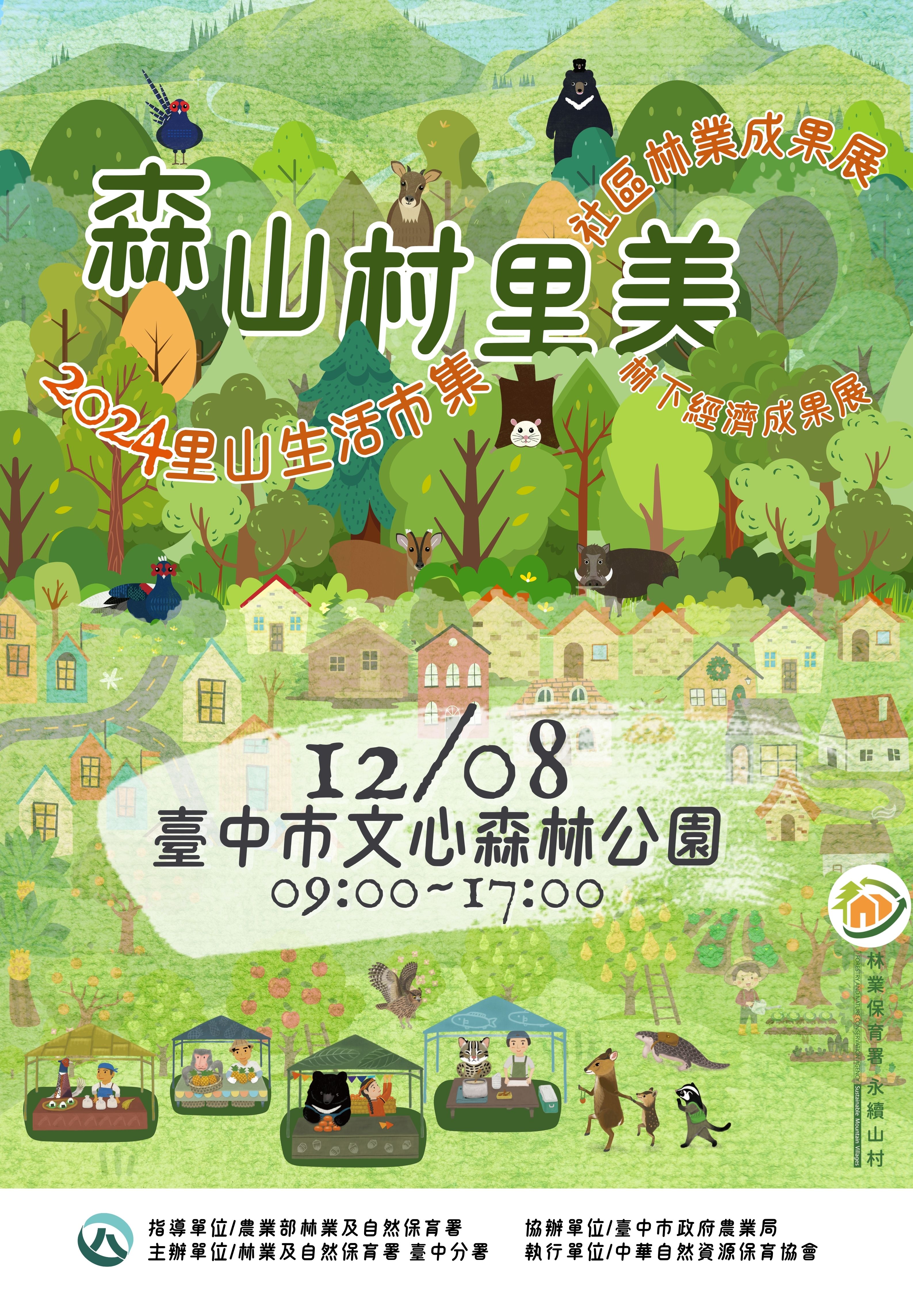 林業及自然保育署臺中分署主辦的「2024里山生活市集」將於12月8日(星期日)於在臺中市文心森林公園盛大登場,現場除了有多樣的農特產品、手工藝品、社區林業及林下經濟成果推廣,更有發票換100元里山券活動、「Tamun小米酒釀」及「苧你幸福手鍊」DIY、段木香菇種植體驗活動、樂團表演、摸彩活動及山林美食品嚐會,邀請民眾一起感受里山生活的魅力! 為鼓勵民眾參加市集開幕活動,林業保育署臺中分署特別辦理早鳥里山券網路預約活動,限量50份,即日起網路預約(https://reurl.cc/qnmWLR),完成報名者至活動現場憑113年11、12月發票5張即可兌換100元里山券,額滿為止。獨家市集DIY及段木香菇種植體驗活動將於12月3日開放報名,詳情請關注「林業及自然保育署臺中分署」粉絲專頁! 臺中分署指出,今年市集以「森山村里美」為主題,邀集70個攤位,涵蓋該分署輔導的臺中里山夥伴和友善耕種小農,及來自各地的里山生活實踐家共同參與,展售新鮮的水果、農產品、特色餐點、精美生活小物,讓參與者品嚐友善環境、里山生活的鮮美滋味。市集更結合該分署113年社區林業計畫成果展及林下經濟成果說明,並邀請台中區農業改良場、生物多樣性研究所、石虎保育協會、荒野保護協會等NGO及機關共襄盛舉,將帶來食農教育、黑熊及石虎保育等互動推廣,傳遞自然保育與永續生活的理念,請把握機會來體驗山村豐美物產與自然共榮的美好!