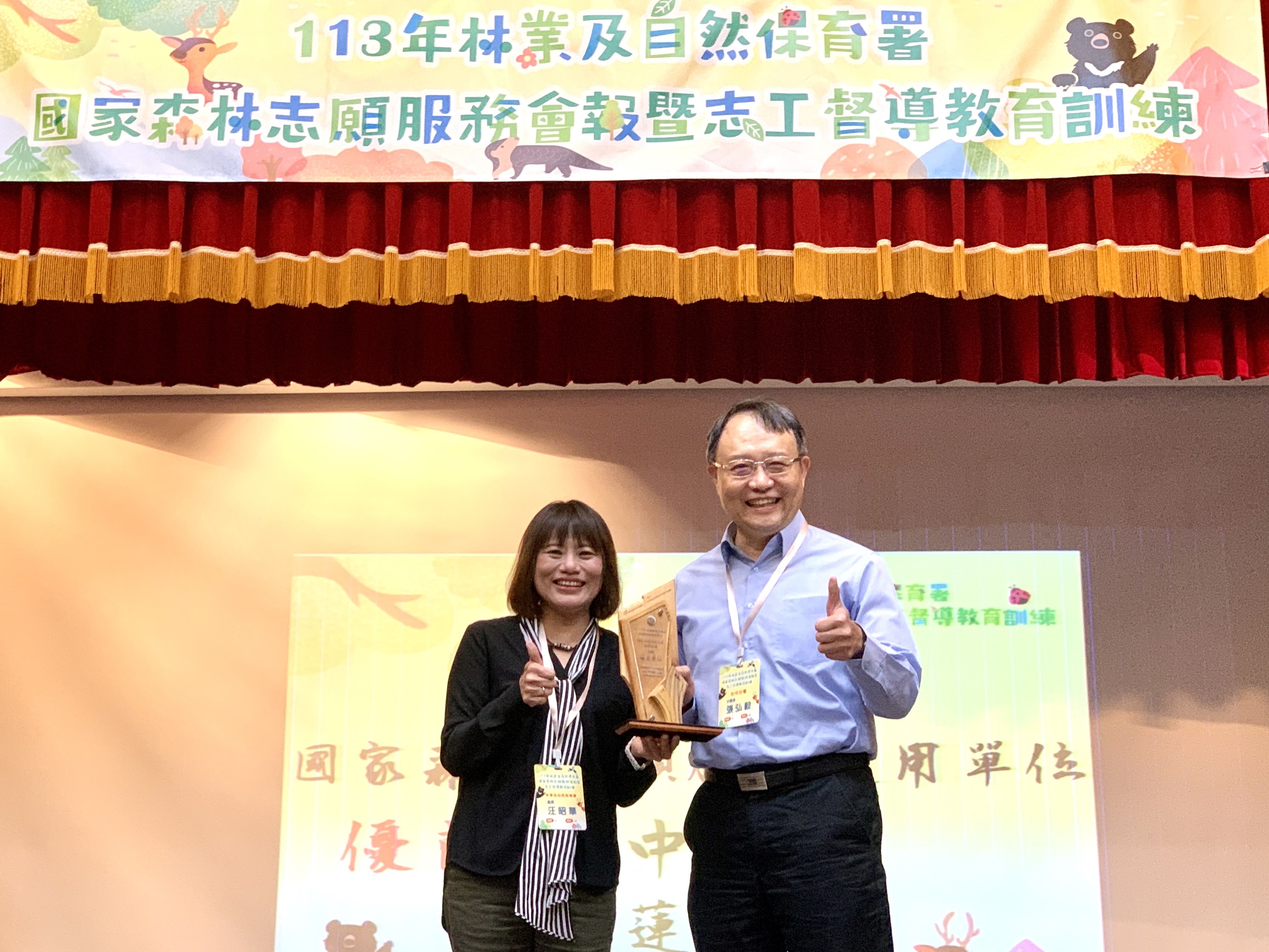 林業及自然保育署臺中分署國家森林志工隊以優質的解說服務、多元創新的志願服務類型,成績斐然,榮獲111-112年度績優國家森林志願服務運用優良單位獎項。林業及自然保育署於12月4日在日月潭青年活動中心舉行表揚大會,肯定該分署在志願服務業務推動的用心並感謝國家森林志工夥伴的付出與努力。