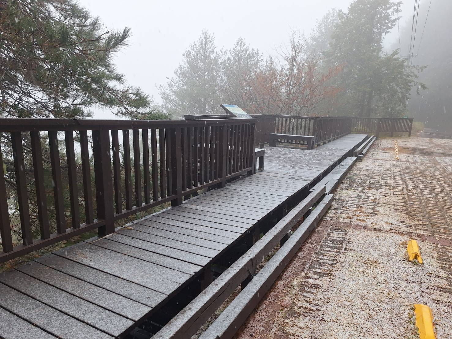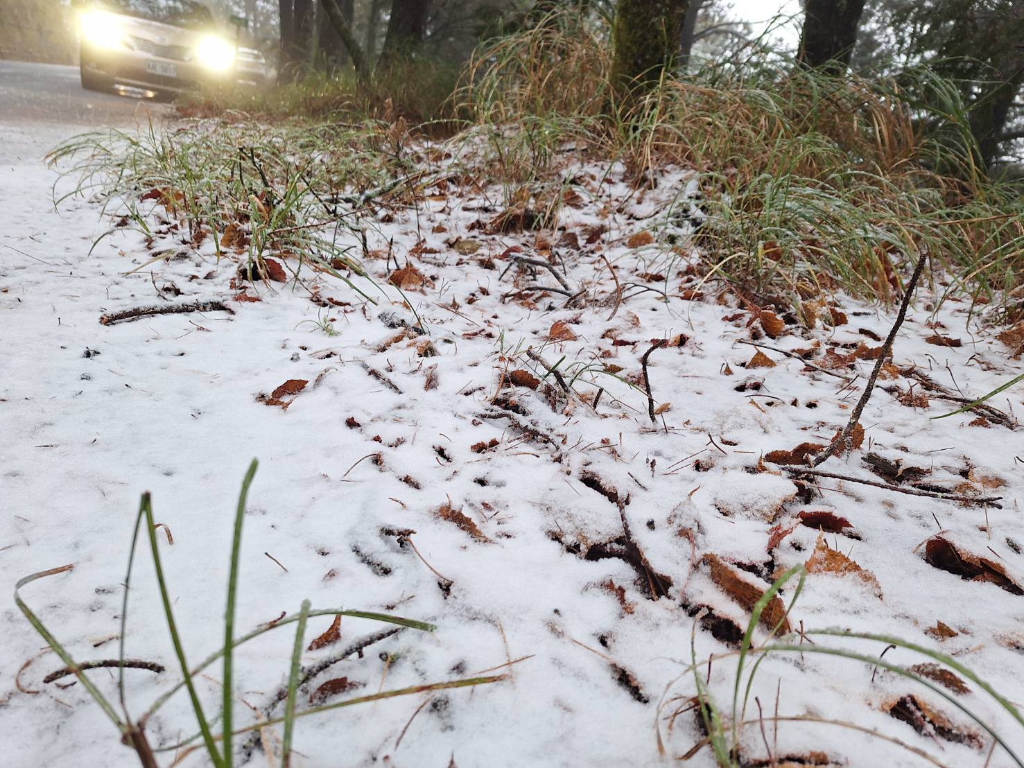 近期冷空氣南下並夾帶水氣,大雪山國家森林遊樂區內49K小雪山(海拔約2600公尺),因氣溫驟降,於今(27)日上午8點開始下冰霰、9點開始降雪。今年的初雪讓草木、地面覆蓋著一層銀白雪花,形成難得一見的夢幻景致。 林業及自然保育署臺中分署表示,由於低溫仍將持續,將視降雪情形啟動林道管制措施,大雪山林道43K以上車輛須加掛雪鏈、具四輪傳動車輛始得通行。 該分署提醒上山遊客,前往欣賞雪景時務必注意保暖防寒、準備足够的禦寒衣物,並請注意行車安全,沿路小心行駛、減速慢行、開啟頭燈、保持與前車的安全距離,另請於傍晚天色轉暗前下山,避免山路蜿蜒、視線不清影響行車安全。 欲了解更多即時資訊,請至台灣山林悠遊網https://recreation.forest.gov.tw/、大雪山國家森林遊樂區fb粉絲專頁https://www.facebook.com/@dasyueshan/查詢,或電洽大雪山遊客中心04-25877901。