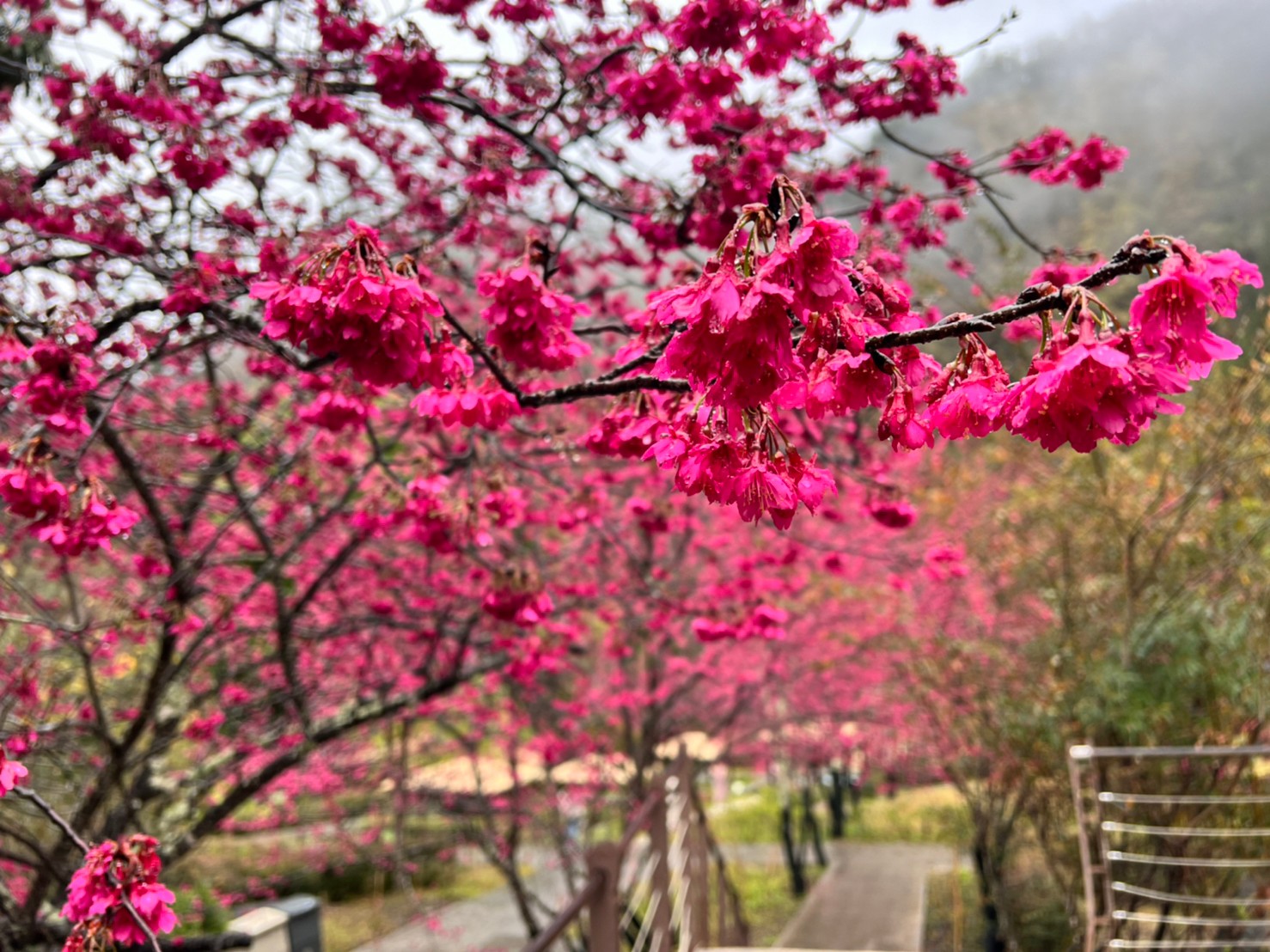 年假期間一波好天氣,八仙山國家森林遊樂區迎來初春盛開的山櫻花,點點緋紅的櫻花已攀上枝枒,在層層繽紛花色的堆疊下,交織成夢幻的美景。搭配友善的天籟步道、十文溪景觀及親水設施,快來八仙山享受一場賞櫻森呼吸之旅吧! 八仙山國家森林遊樂區位於谷關地區,為中部地區的賞櫻秘境,受到前幾波寒流的影響,天氣暖和後,園區內的山櫻花已盛大綻放。漫步於園區中,隨處可見到夢幻的粉紅花朵。從收費站進入,沿著八仙山林道兩旁的櫻花盛開迎賓,遊客中心及親水區周邊、小櫻花林等多處景點的櫻花,也燦爛盛開。 林業保育署臺中分署特別推薦賞櫻秘境--小櫻花林,襯著歷史場景的運材火車及鐵軌,另有一番風情,民眾可以在櫻花樹下駐足,盡情的深呼吸,還可發現冠羽畫眉、白耳畫眉、赤腹山雀與紅嘴黑鵯等山鳥成群結隊於樹林間流連穿梭的畫面,此起彼落的鳥鳴聲,彷彿在演奏著交響樂,感受森林溫暖的陽光及視覺與聽覺的雙重享受。 趁著春暖花開,林業保育署臺中分署邀請民眾走入山林,舒緩身心。八仙山國家森林遊樂區亦設有小木屋住宿及提供餐飲服務,訂房、餐點請洽台中商旅八仙山莊:04-25950266。園區旅遊資訊請洽遊客服務中心:04-25951214。