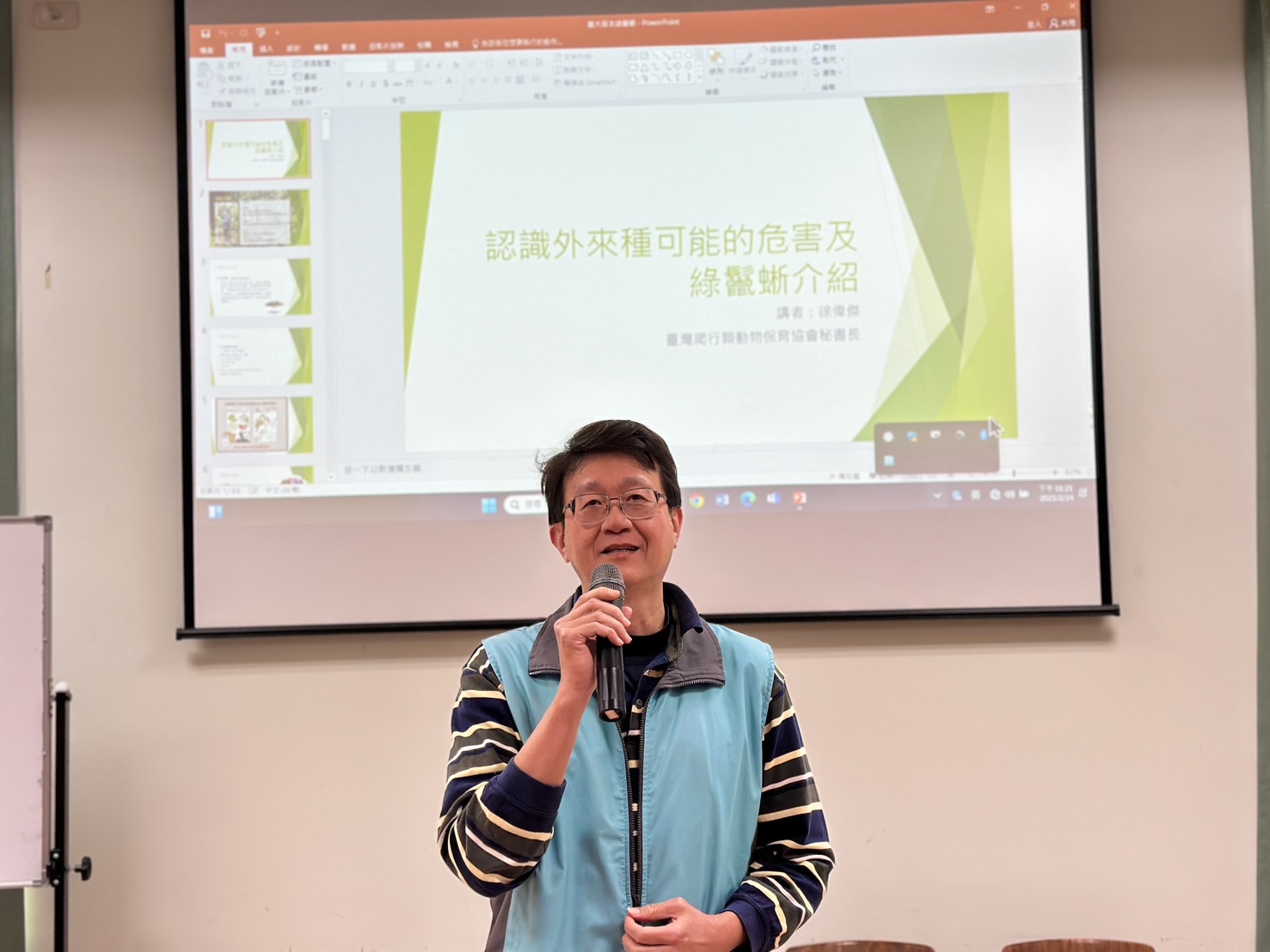 林業及自然保育署臺中分署為了建立臺中地區綠鬣蜥圍堵防線,於114年2月24日辦理「外來入侵種綠鬣蜥移除教育訓練」,特別邀請臺中市政府農業局、臺中市野生動物保育學會、臺中分署外來入侵種移除射擊隊與保育承辦同仁及協助移除工作之和平區南勢部落獵人團隊共計30人參加,藉此提升工作人員移除綠鬣蜥的知識與能力,期有效防止綠鬣蜥跨越烏溪於臺中地區建立族群。