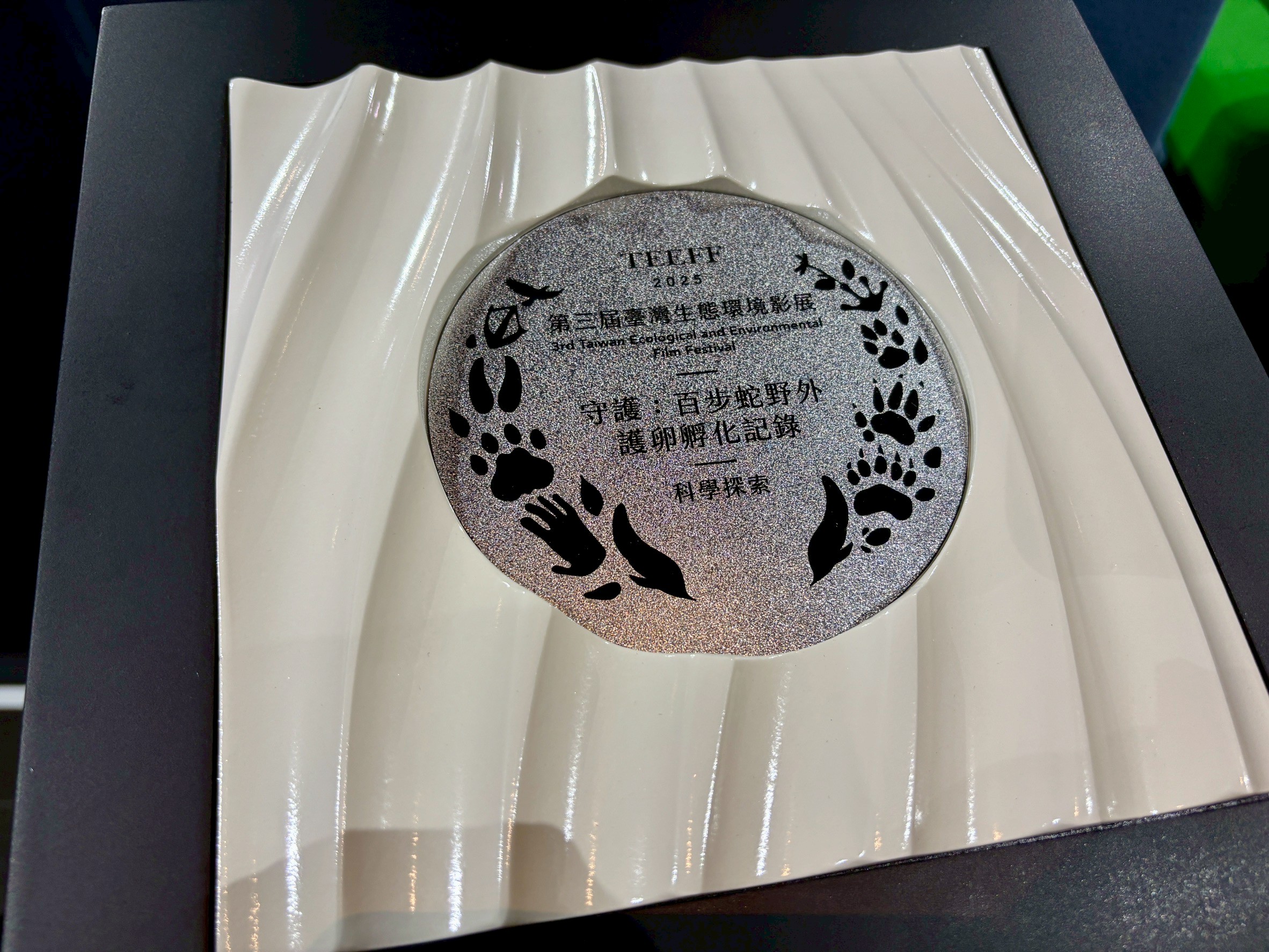 林業及自然保育署臺中分署製作的《守護:百步蛇野外護卵孵化記錄》影片,在第三屆臺灣生態環境影展中榮獲「科學探索獎」獎肯定。該片完整記錄了全球首筆百步蛇野外護卵、孵化與護幼過程的珍貴影像,深具突破性生態價值,也成功透過影音平台引起廣大社群迴響,點閱率已逾42萬人次,展現蛇類生態保育推廣的深遠影響。 導演顏妏如在得獎致詞時,特別感謝林業保育署臺中分署對於生態研究科學長期支持,關注在地各項保育議題,同時也感謝野聲環境生態有限公司團隊投入各項專業器材及人力,在野外進行長期監測記錄,才得以有這部影片的誕生。 林業保育署臺中分署表示,《守護:百步蛇野外護卵孵化記錄》影片拍攝歷時2個月,過程中以紅外線自動相機、縮時攝影機、夜視鏡、密錄攝影機等科技器材,24小時不間斷日夜守護紀錄,終於完整蒐集到全世界首筆百步蛇母蛇與20顆蛇卵的護卵、孵化到護幼過程影像,並且首度利用諧波反射器成功追蹤幼蛇離穴後的活動,再與過去林業保育署林華慶署長任職於臺北市立動物園時,在圈養環境內進行的百步蛇配對繁殖紀錄做比對,才能將珍貴的百步蛇生殖生態資料完整呈現給大眾。 林業保育署臺中分署強調,蛇類是森林生態系的重要一環,在維繫自然平衡上不可或缺,但長久以來因為外型或社會文化而遭大眾誤解。希望透過這些珍貴的影像紀錄,提供科學知識同時,增加社群傳播效應,讓民眾看見蛇類也有守護後代的溫暖行為,翻轉大眾對蛇的刻板印象,進一步理解蛇類在生態系中的價值。 《守護:百步蛇野外護卵孵化記錄》在林業保育署官方YouTube頻道持續公開中(https://reurl.cc/ekxORL),歡迎民眾點擊觀賞,一起守護臺灣原生蛇類保育。