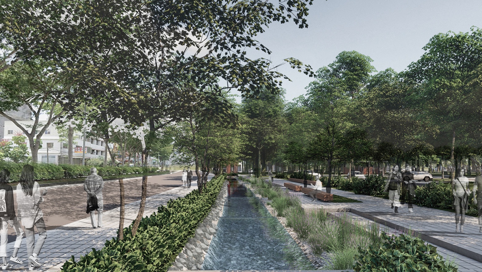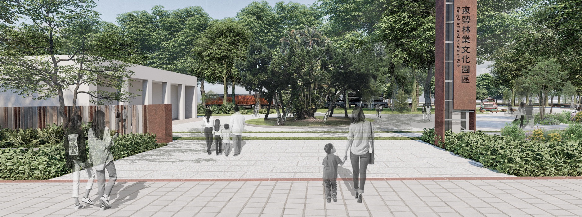 林業保育署臺中分署表示,東勢林業文化園區前身為大雪山林業股份有限公司,擁有60年代東亞地區最大製材廠。過去園區周邊設有紅磚圍牆,不僅遮蔽視線,也使園區入口不易辨識,經常造成遊客錯過。這次工程將以全新設計手法重塑園區形象,並揭露原本埋設於地下的東勢「本圳」水道,沿園區邊界營造圳水流經的淺水道與開放水域,展現地方水文與林業歷史的緊密關聯,打造兼具文化與生態意象的「大雪山旅遊軸帶入口」。