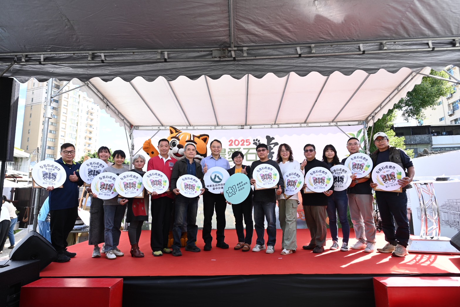 林業及自然保育署臺中分署今(17)日攜手臺中市政府農業局與農業部生物多樣性研究所,於營林所臺中出張所宿泊所舉辦「2025農愛石虎—臺中友善石虎農作標章推廣成果發表暨標章頒布會」,感謝在地農民與社區多年來的投入。今年新增12位農民取得標章認證,使臺中地區友善石虎農作標章農友累計達40位,共同營造75公頃友善農地,讓農田成為石虎能安心活動、覓食與移動的空間,並逐步為淺山地區串起完整的生態廊道。 林業保育署臺中分署張弘毅分署長致詞時表示,臺中地區以國土生態綠網軸帶規劃及多年石虎監測成果為基礎,自111年起於東勢、石岡、新社等石虎熱區推動「友善石虎農作標章」。透過農民的參與,友善農地面積逐年擴大,也逐步串聯起重要的綠網生態廊道,讓棲地連通性越來越完整,也感謝台灣積體電路製造股份有限公司透過「Eco Plus!-生態共融計畫」共同推廣友善農業與友善石虎農作標章。近年來持續輔導農友申請標章及協助行銷標章農產,臺中的標章甘露梨、筊白筍、柑橘、甜柿等新鮮蔬果,在升陽農產股份有限公司與家福股份有限公司與農友合作下,陸續在家樂福量販店上架,讓消費者在日常購物時,就能用行動支持石虎保育,鼓勵及支持農友持續投入友善耕作。 今年取得標章的12位農友為陳裕源、唐全成、林義職、洪聖淵、曹曉明、吳孟育、潘春英、張振榮、張閔翔、徐美文、劉凌璇及劉建宏,由臺中分署張弘毅分署長與生多所林育秀副研究員共同頒發標章與證書,肯定農友實踐友善農法、遵守友善石虎的耕作允諾,讓農地成為石虎能夠安心利用的棲息環境。臺中市政府農業局亦於活動中頒發感謝狀,表揚參與「石虎生態服務給付計畫」超過5年的3位東勢區農友羅字潮、羅淼文、孫玉錦以及臺中市東勢創意執行協會與臺中市東勢區產業文化發展協會,感謝他們長期投入巡護與維護棲地等行動。 今年活動的一大亮點,則是跨界創意合作。臺中分署首度攜手龍昇釀造股份有限公司(金色三麥)以標章農友陸巧嵐生產的桶柑原汁,研發推出「友善石虎柑橘啤酒」。金色三麥不僅善用啤酒釀造專業讓更多人認識友善農產,更積極投入生物多樣性ESG計畫。今日由金色三麥詹于慧廠長與張弘毅分署長共同發表「Brew for Biodiversity–友善石虎柑橘啤酒計畫」,產品預計明年於臺中金色三麥餐廳、大雪山及八仙山國家森林遊樂區同步上市。 活動現場也安排「從產地到餐桌」的友善餐點體驗,由生態廚師運用標章農產烹調特色料理,搭配友善石虎柑橘啤酒試飲,讓與會者用味蕾感受友善農業的美好與價值,也期待友善農業與石虎保育的理念能夠傳達給不同族群與生活場域。 林業保育署臺中分署強調,友善石虎農作不只是農法的改變,更是一種重新思考生產、生態與生活關係的行動。未來將持續串連在地農友、研究單位、地方政府與企業夥伴,深化友善農業的經濟效益,讓農友能夠長期投入、維護田區環境與生物多樣性。分署也邀請民眾多選購「友善石虎農作標章」農產,因為每一次消費選擇,都是推動供應鏈轉型的力量,也是支持農民兼顧生產、生態的實際行動。