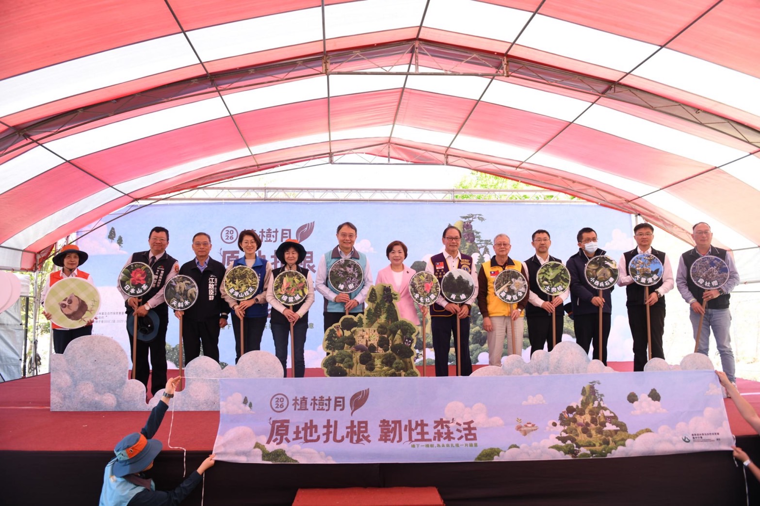 為推動原生植栽、營造兼具景觀與生態的城市綠地,林業及自然保育署臺中分署攜手臺中市政府、國際獅子會300C 2區及在地社區單位,今(12)日於豐原區翁子公園共同舉辦115年「原地扎根,韌性森活」植樹活動。活動吸引各界貴賓、翁子國小師生及民眾近600人參與,齊力種下楝樹、天料木、魚木、小西氏石櫟等原生樹種,為城市種下希望,也為環境韌性扎下深厚的根基。